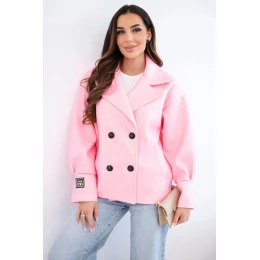 3. Krátká dámská model 22036107 bunda s límcem bonbónově růžová - K-Fashion