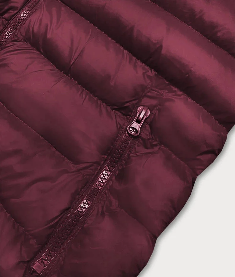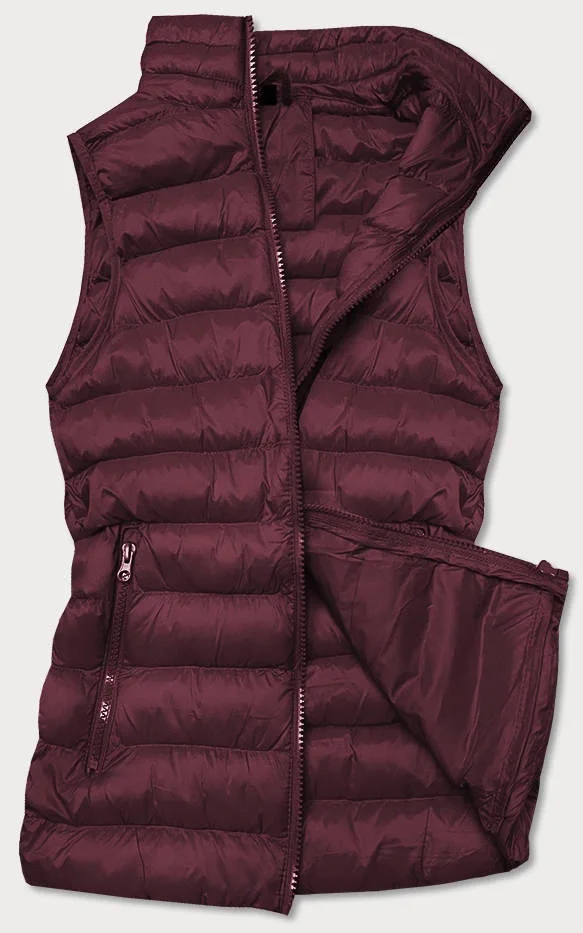 Krátká dámská prošívaná vesta v bordó barvě (23077-1)