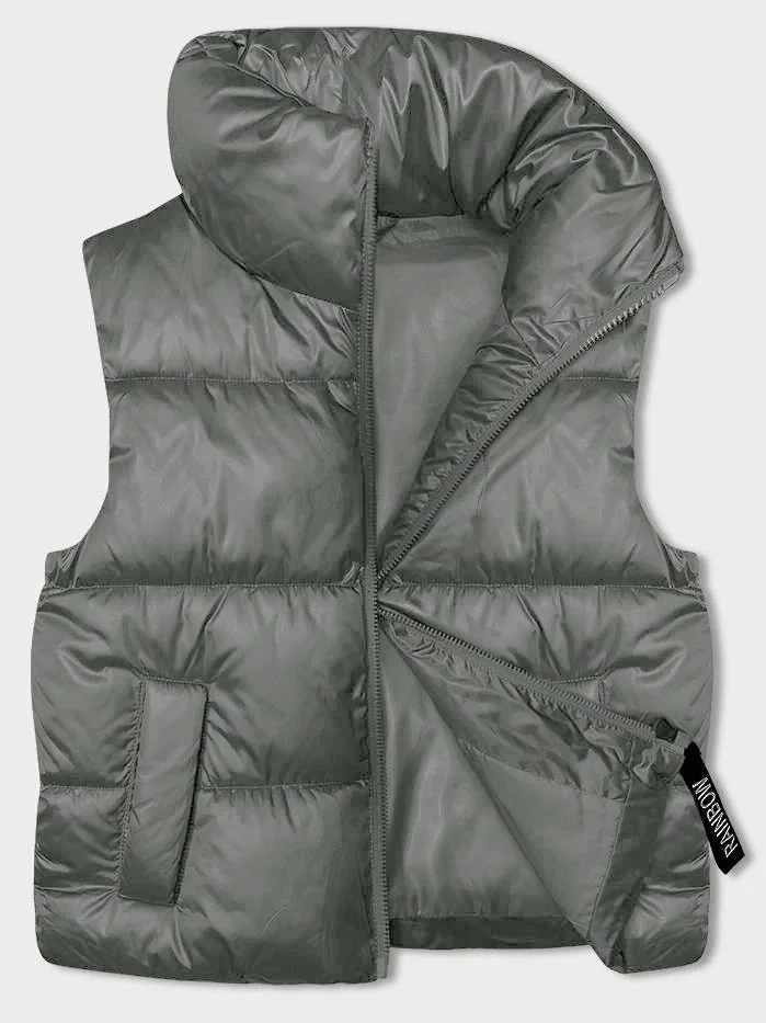 Krátká dámská vesta v khaki barvě se stojáčkem model 19642584 - S'WEST