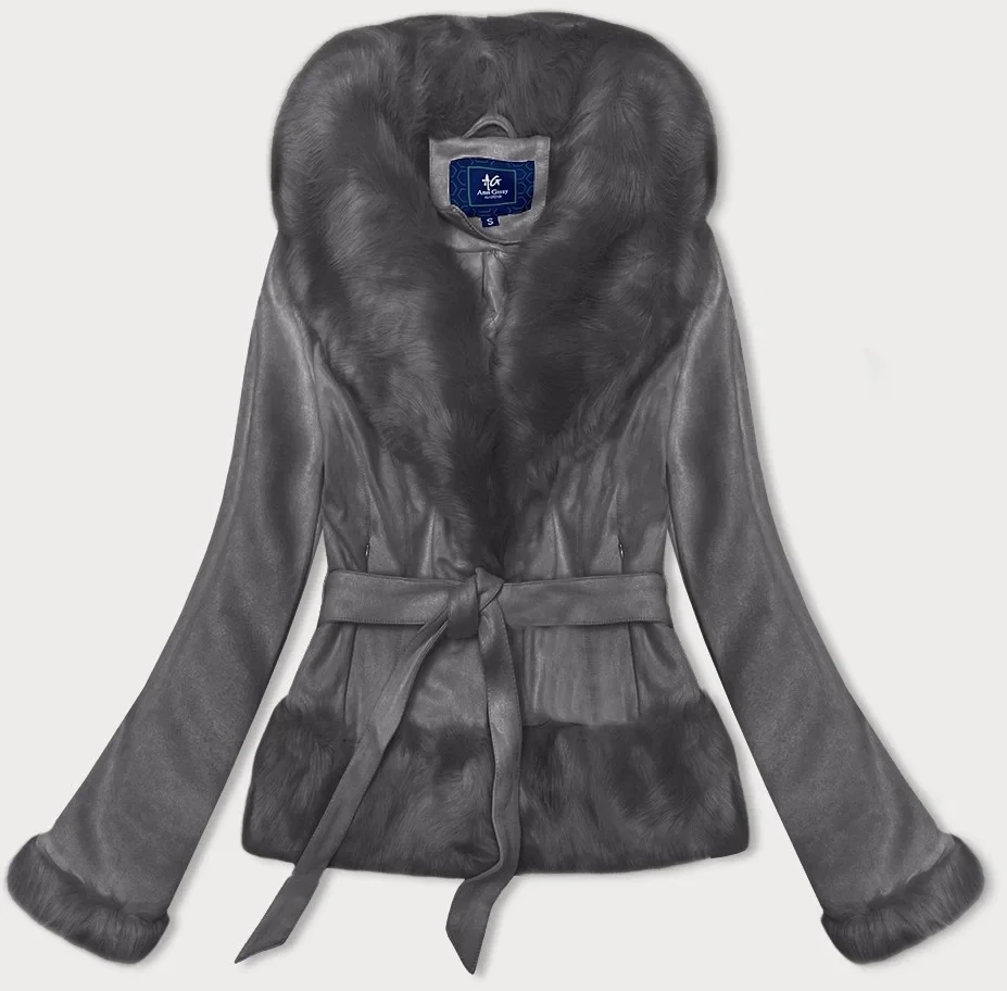 Krátká dámská zavazovací bunda v grafitové barvě Ann Gissy (K0327)