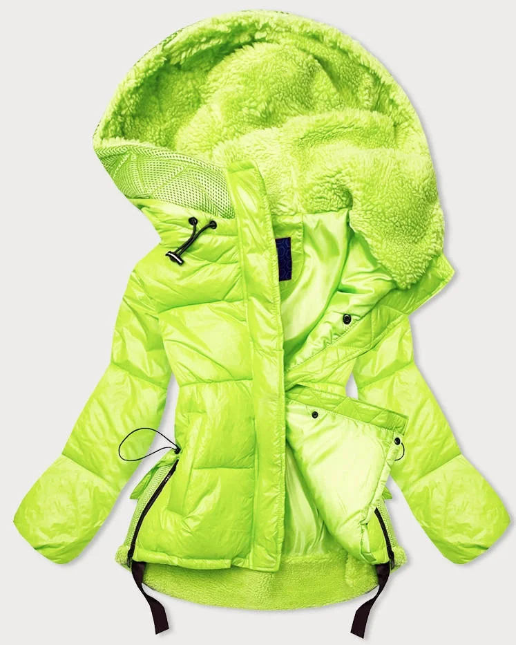 Přidání recenze k Krátká dámská zimní bunda v neonově žluté barvě s kapucí model 21242657 - Ann Gissy
