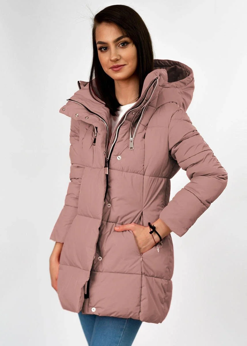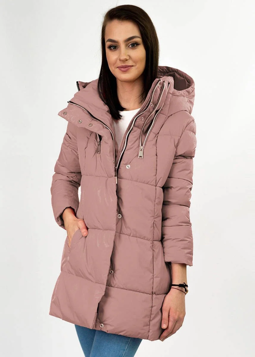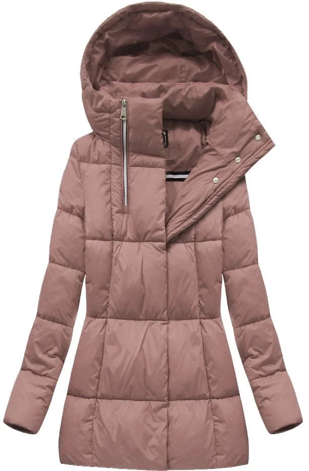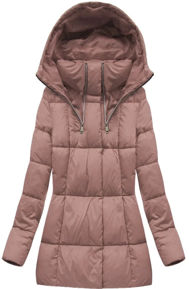 Přidání recenze k Krátká dámská zimní bunda ve starorůžové barvě se zipy (7750)