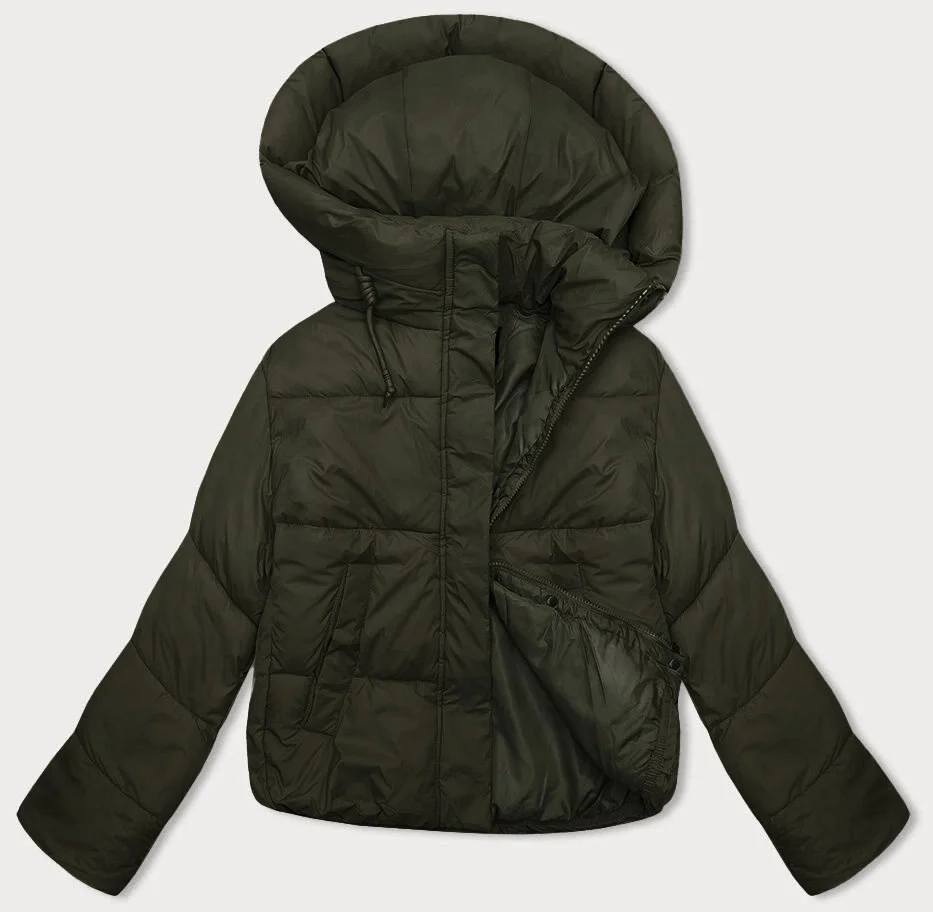 Krátká dámská zimní péřová bunda v army barvě model 21248751 - J.STYLE