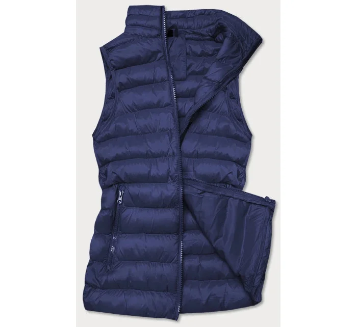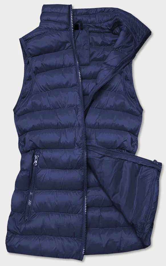 Krátká modrá prošívaná dámská vesta (23077-215)