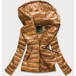 Krátká prošívaná dámská bunda v hořčicové barvě s kapucí (CAN-333)