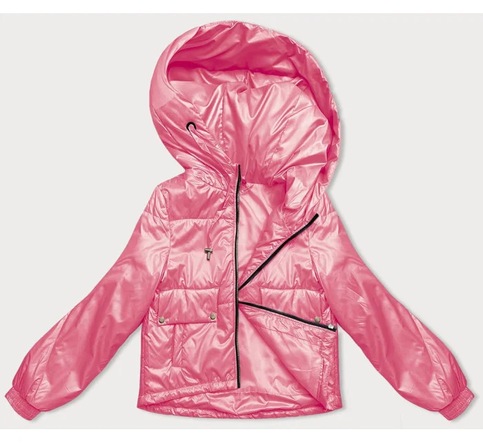 Krátká růžová dámská bunda s kapucí model 18910657 - S'WEST