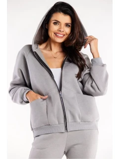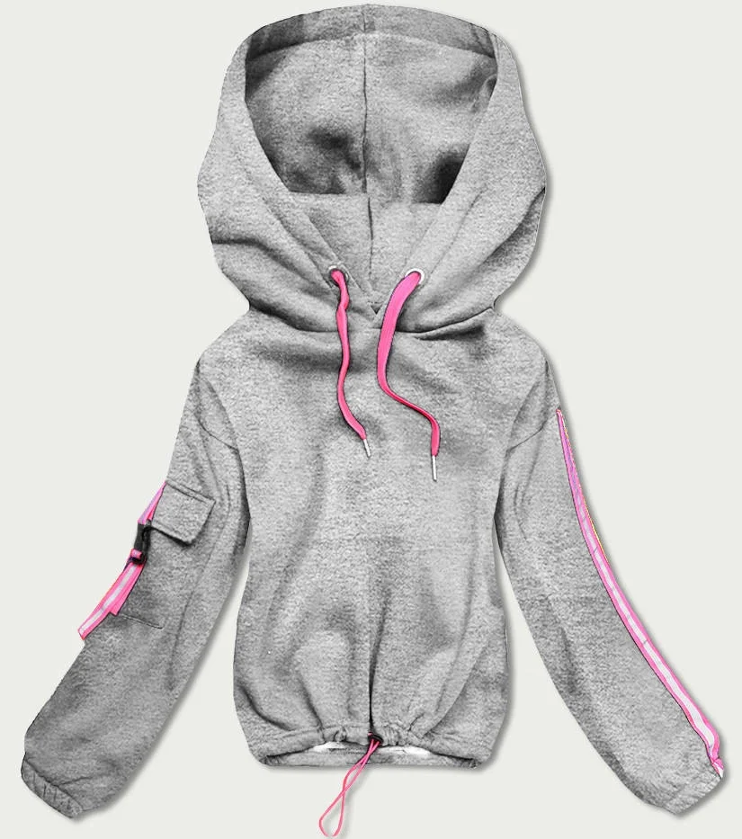 Přidání recenze k Krátká šedá dámská bavlněná tepláková mikina (26031)