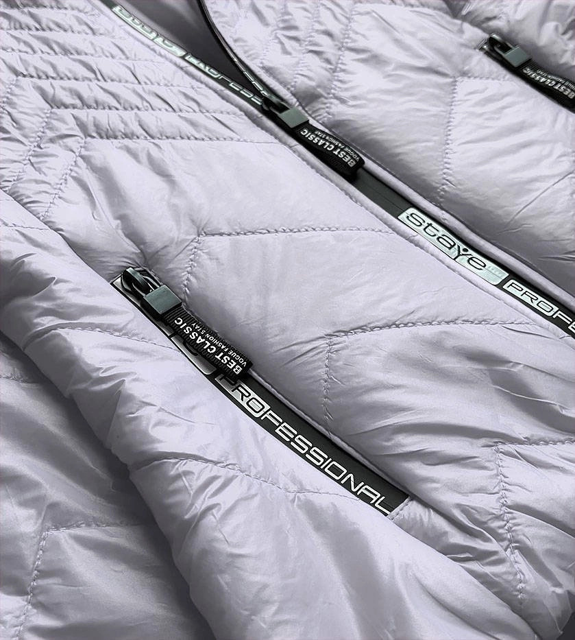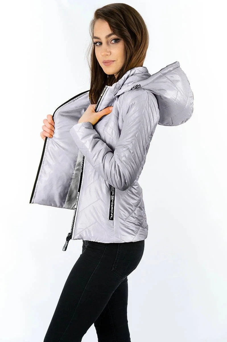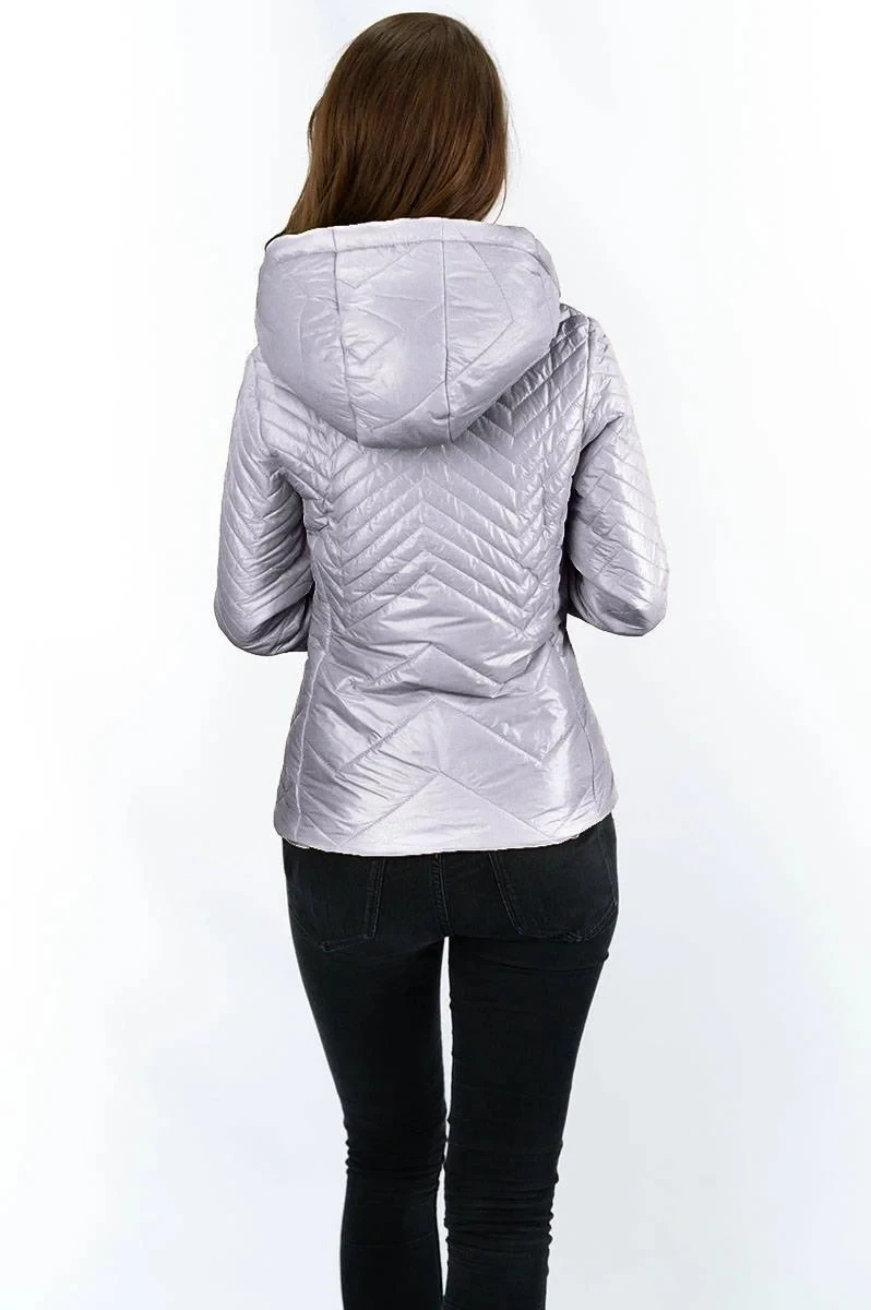 Přidání recenze k Krátká šedá prošívaná dámská bunda s kapucí model 14764916 - S'WEST