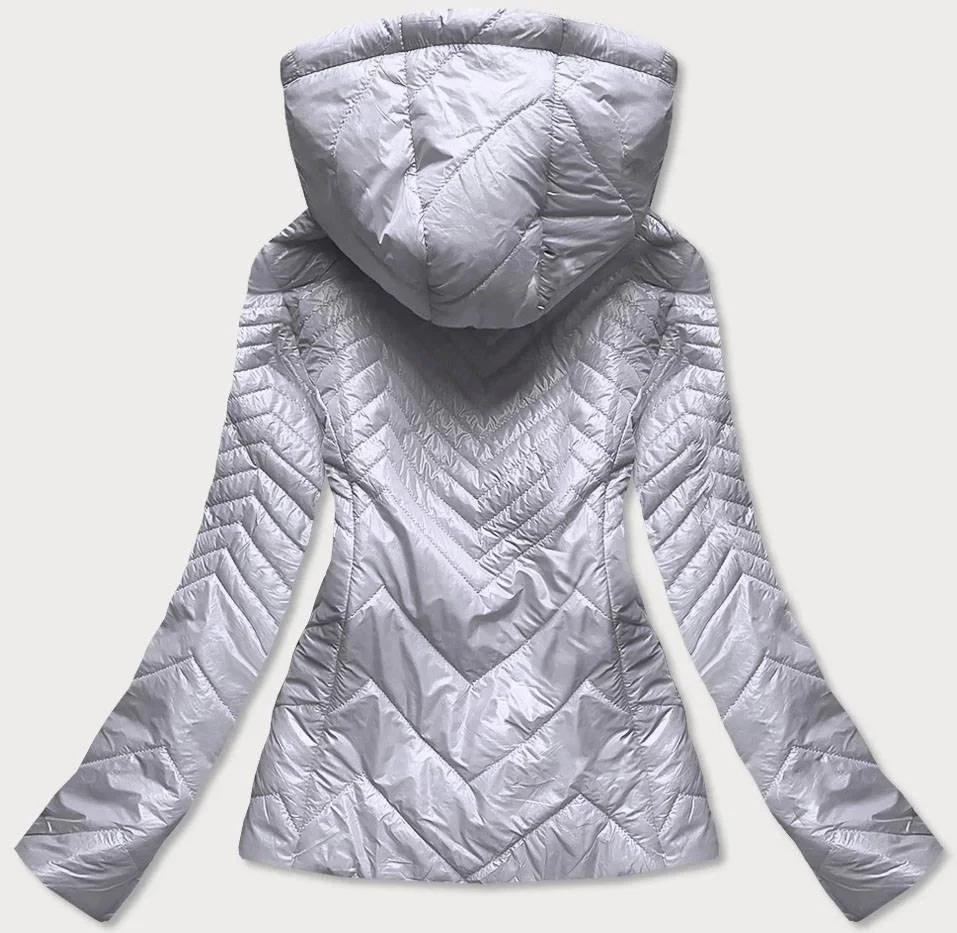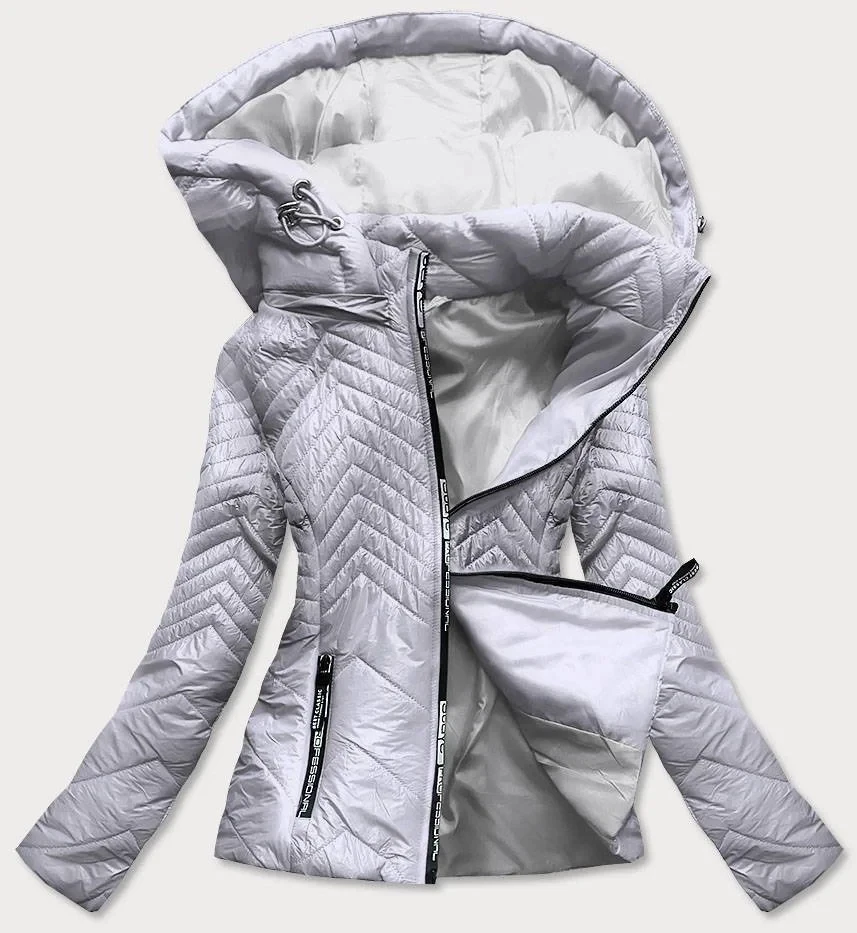 Krátká šedá prošívaná dámská bunda s kapucí model 14764916 - S'WEST