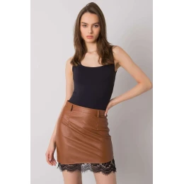 Hnědá tužková sukně z ekologické kůže s ozdobnou krajkou. Sukně se skrytým zipem.
