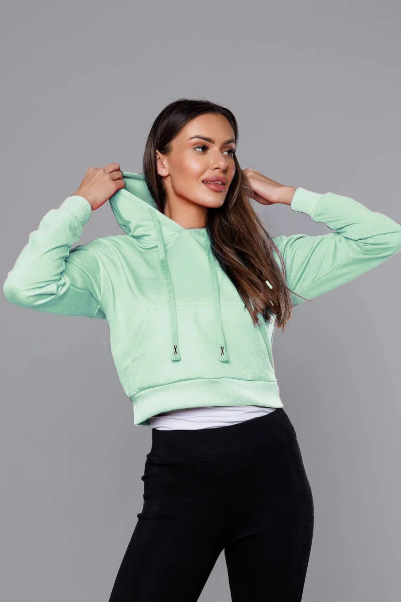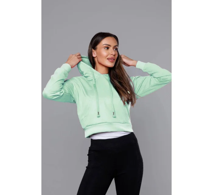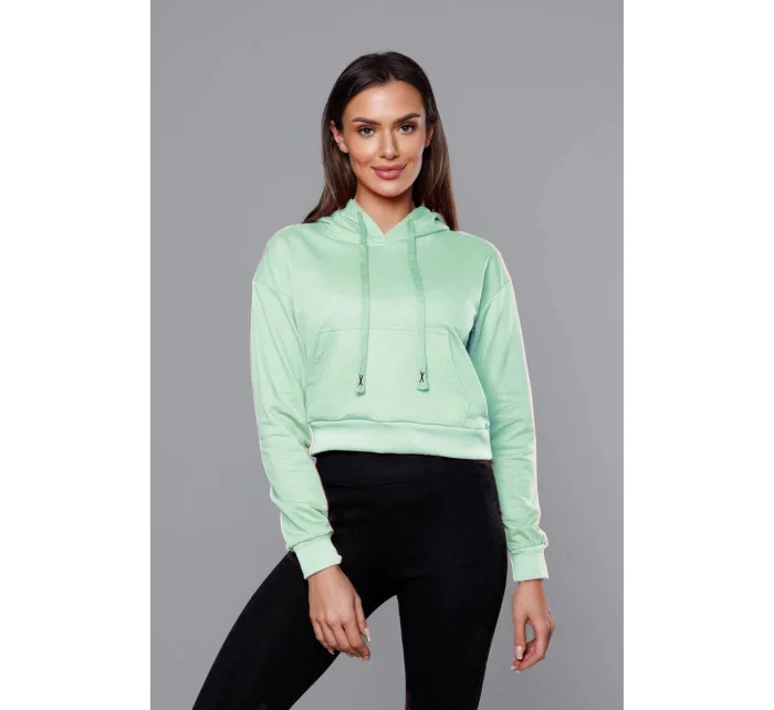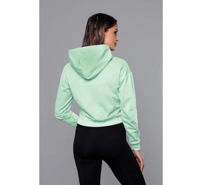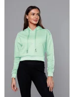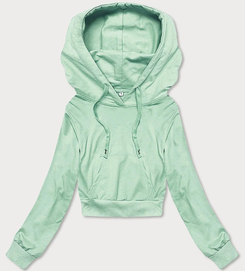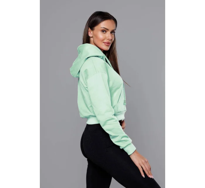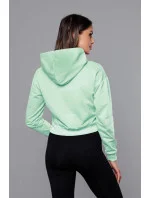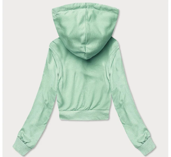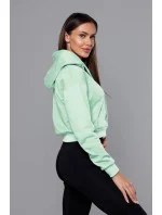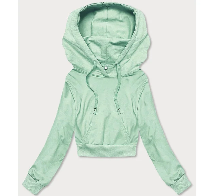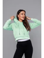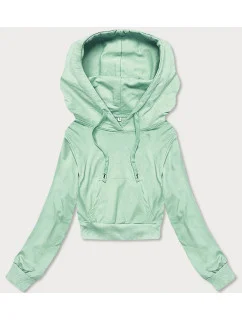 Krátká tepláková mikina v pistáciové barvě s kapucí (8B939-39)