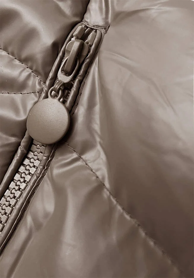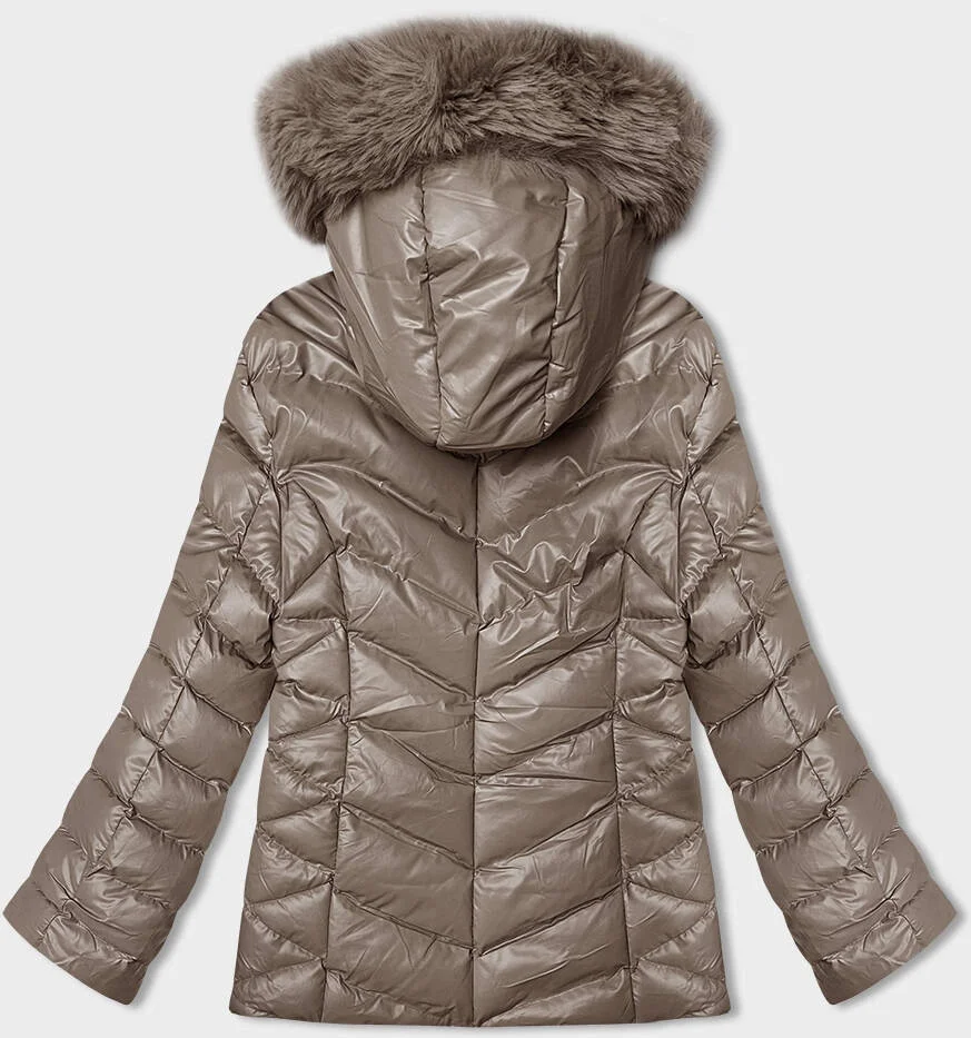 Krátká zimní bunda v barvě cappuccino s kapucí (5M3138-84)