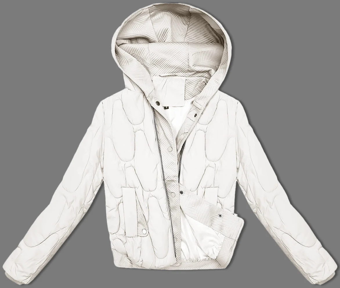 Krátká zimní bunda v barvě ecru s ozdobnou kapucí S'west (B8261-26)
