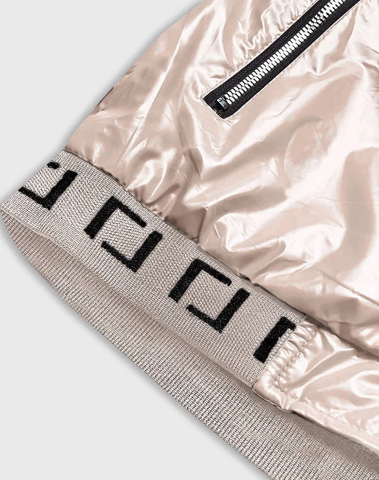 Bunda má dvě kapsy a zapíná se zipem. Model má kapuci, kterou není možné odepnout. Bunda má délku do pasu.