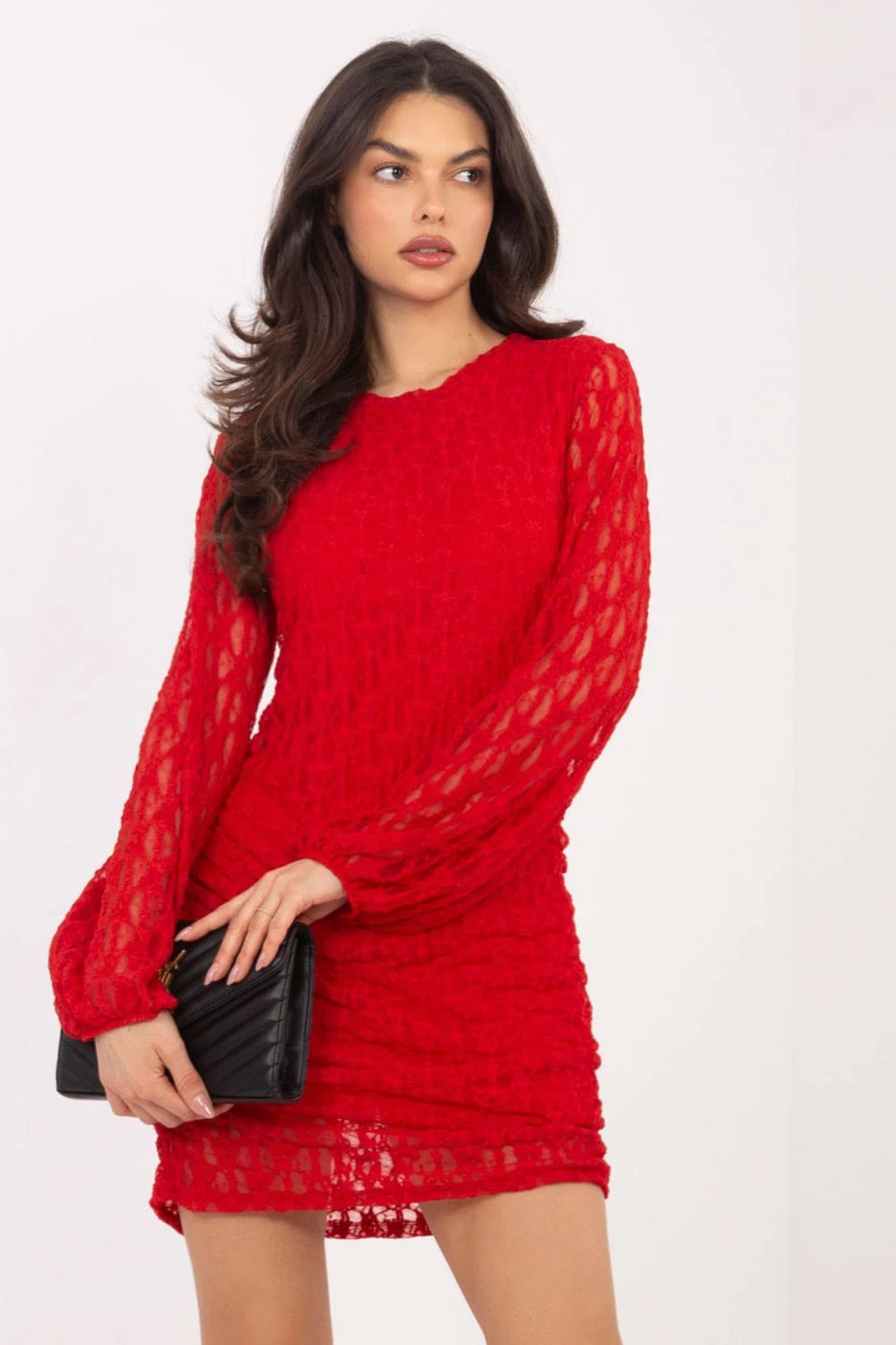 Elegantní krajkové mini šaty jsou skvělou volbou pro ženy, které chtějí zdůraznit svůj styl a ženskost. Model okouzluje různorodou strukturou materiálu, která dodává celku výjimečný, dekorativní charakter a jemně přitahuje pozornost. Šaty jsou vyrobeny z kombinace viskózy a elastanu, díky čemuž jsou měkké, elastické a pohodlné na nošení, a zároveň dobře sedí na postavě. Kulatý výstřih zdůrazňuje klasickou eleganci, a záhyby po stranách krásně modelují postavu a zdůrazňují pas. Model mini délky má dlouhé nafouklé rukávy bez podšívky, které dodávají lehkost a romantický výraz. Podšívka v hlavní části zajistí pohodlí při nošení a dostatečné krytí, aniž by narušila jemný vzhled krajky. Je to ideální volba na elegantní akce, večírky a zvláštní příležitosti, kdy záleží na stylovém a efektním vzhledu.