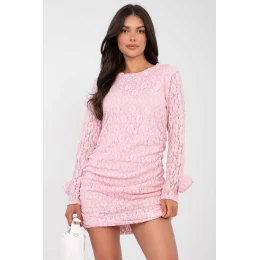 Elegantní krajkové koktejlové šaty, ideální na návštěvy a večírky. Model ve formě tužkových šatů krásně zdůrazňuje ženskou siluetu, dodává stylizaci eleganci a smyslnost. Šaty jsou vyrobeny z kombinace viskózy a elastanu, co zajišťuje měkkost, pružnost a vysoký komfort nošení. Různorodá textura materiálu a krajka dodávají celku výjimečný, elegantní vzhled. Mini délka ve spojení s přiléhavým střihem vytváří efektní, moderní formu. Model má kulatý výstřih a nezavírá se, obléká se přes hlavu. Dlouhé rukávy bez podšívky dodávají lehkost a ozdobná růže z krajky je originálním, přitažlivým detail. Další výhodou jsou záhyby po stranách, které zdůrazňují postavu a zakrývají drobné nedokonalosti. Šaty mají podšívku, co zajišťuje pohodlí nošení a estetické provedení. Skvělá volba pro ženy, které chtějí vypadat elegantně a stylově při výjimečných příležitostech.