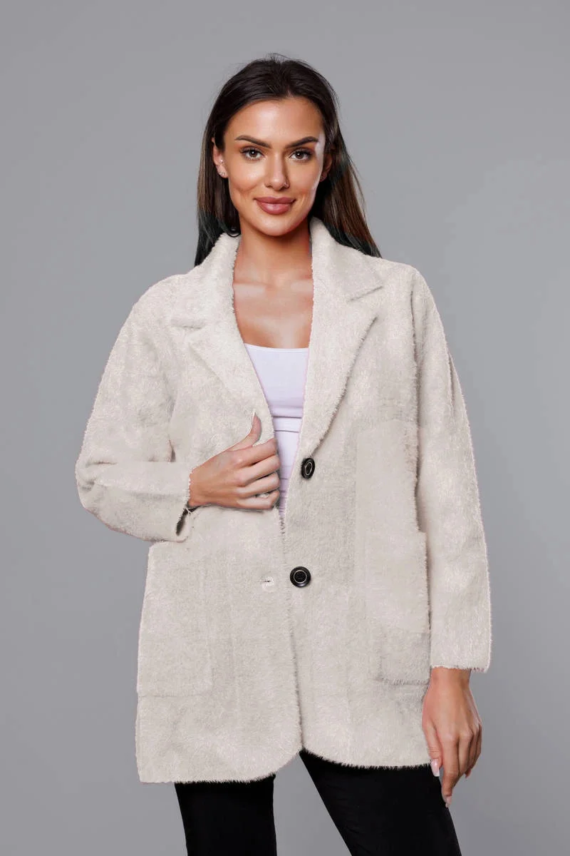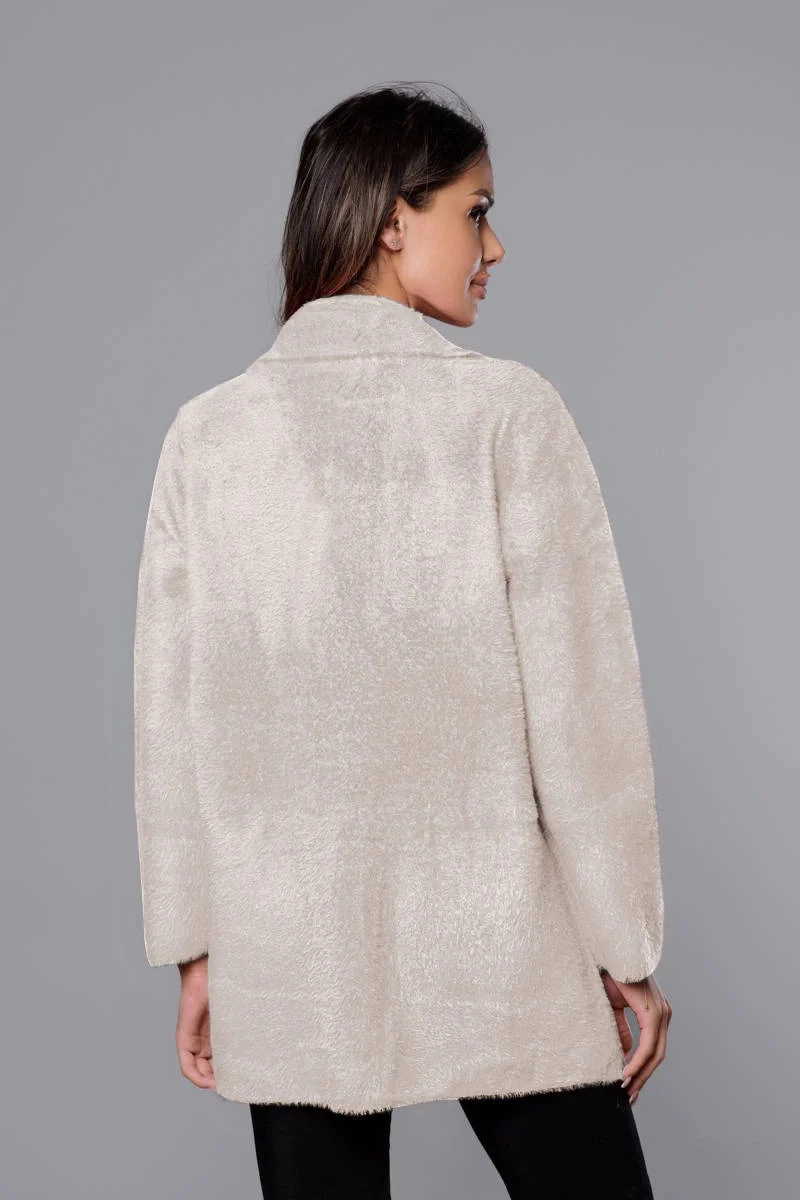 Krátký béžový vlněný přehoz přes oblečení typu alpaka model 18059157 - MADE IN ITALY