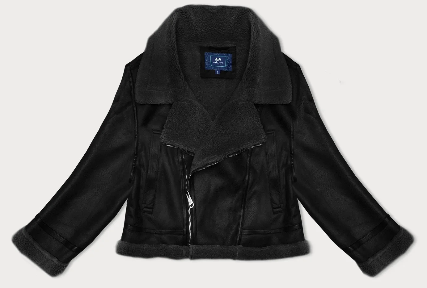 Kožíšek má uvnitř kožešinovou podšívku. Model má dvě kapsy bez zapínání a zapíná se zipem. Délka modelu je do pasu.