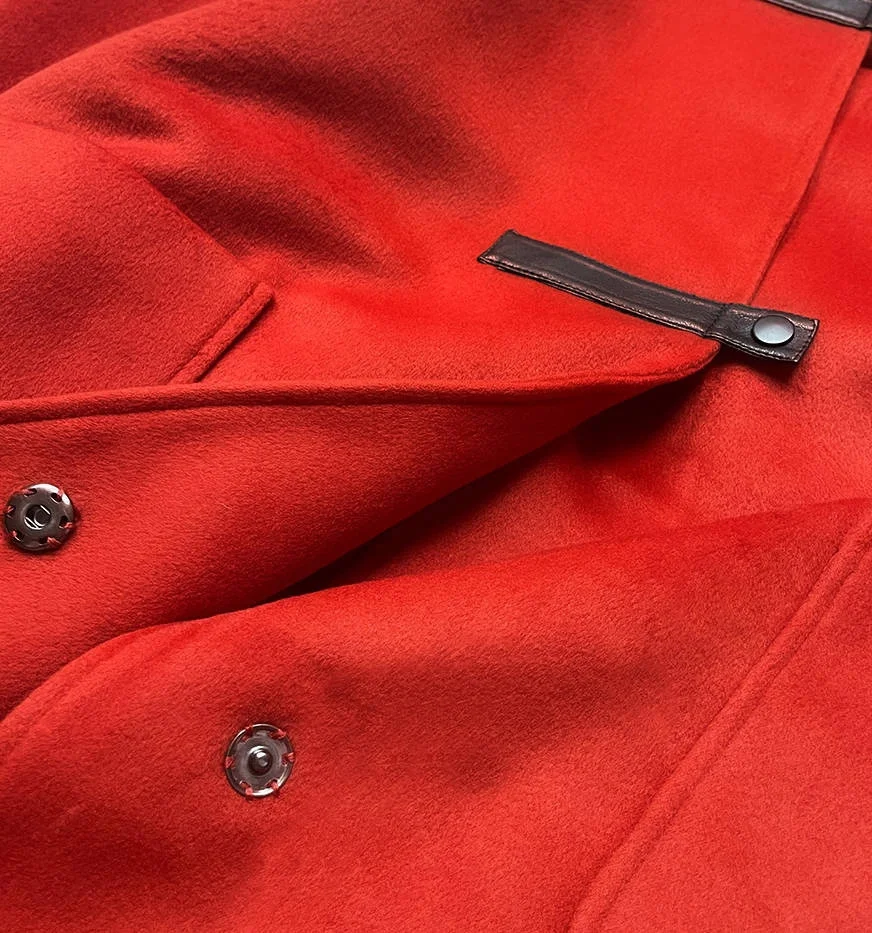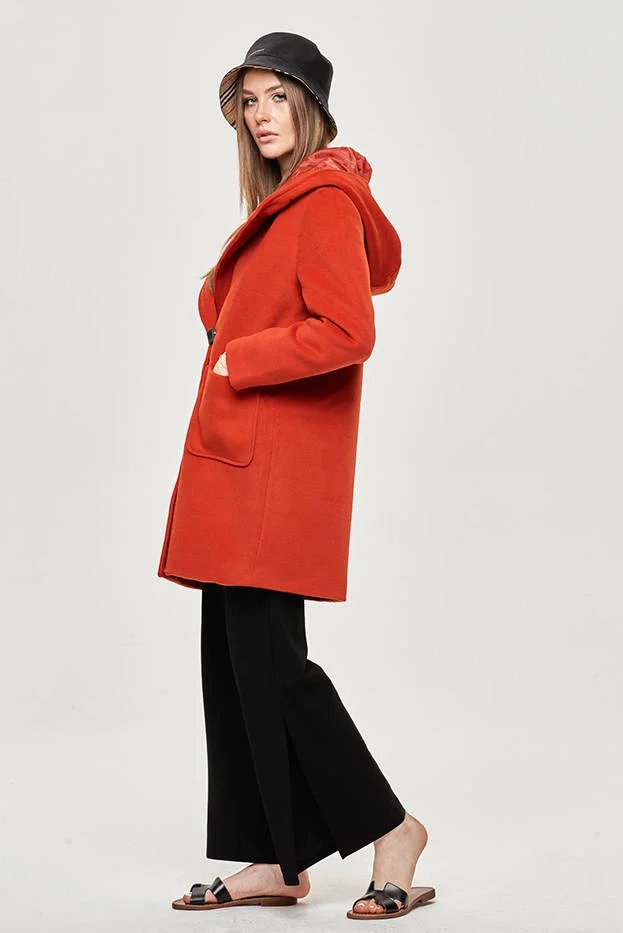 Krátký červený dámský kabát s kapucí (GSQ2311)