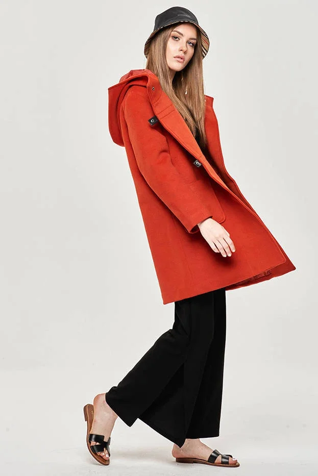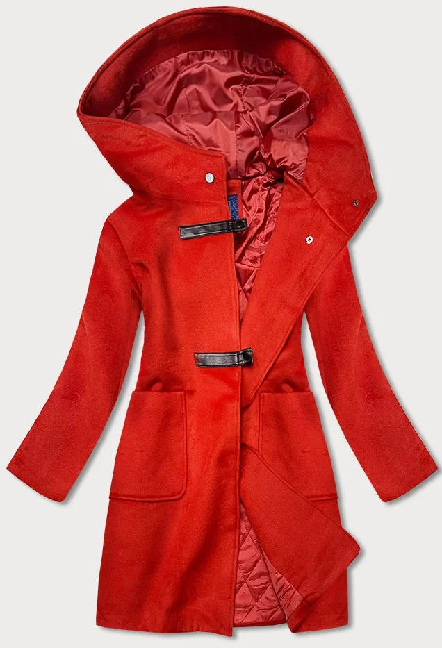 Krátký červený dámský kabát s kapucí (GSQ2311)