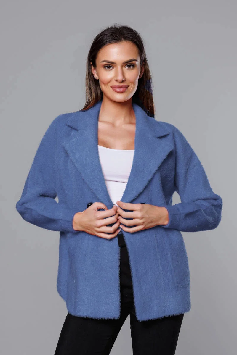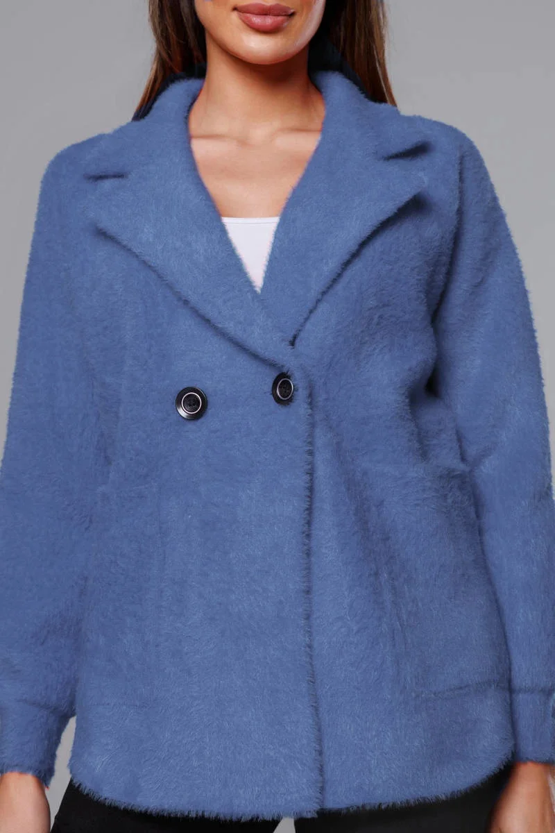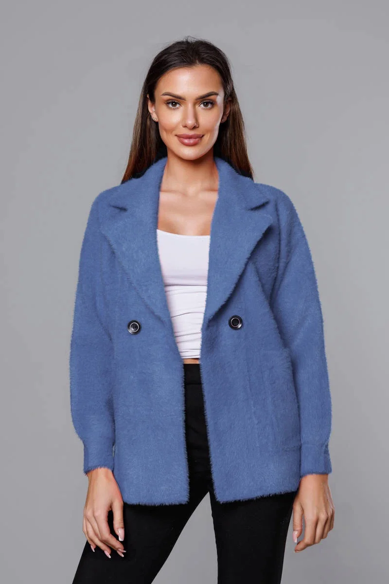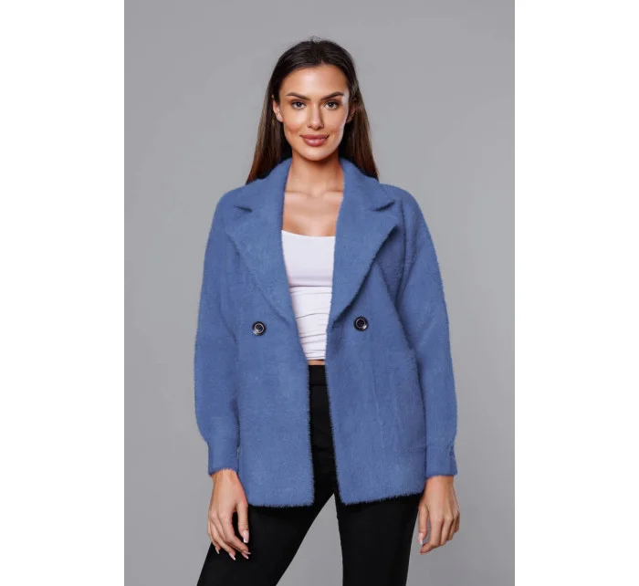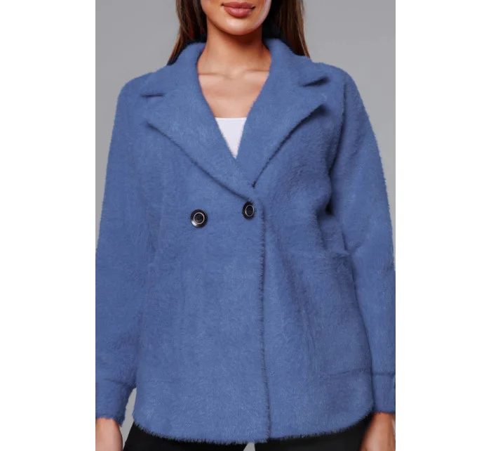 Krátký modrý přehoz přes oblečení typu alpaka model 18059129 - MADE IN ITALY