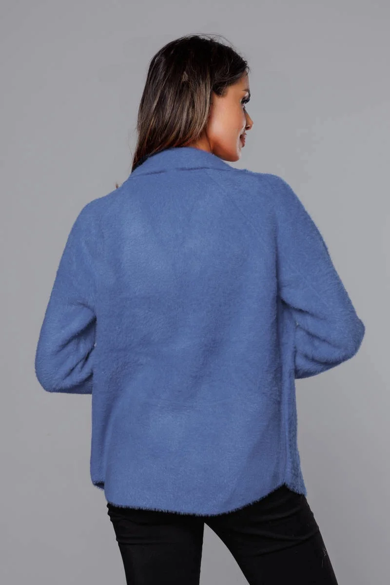 Krátký modrý přehoz přes oblečení typu alpaka (CJ65)