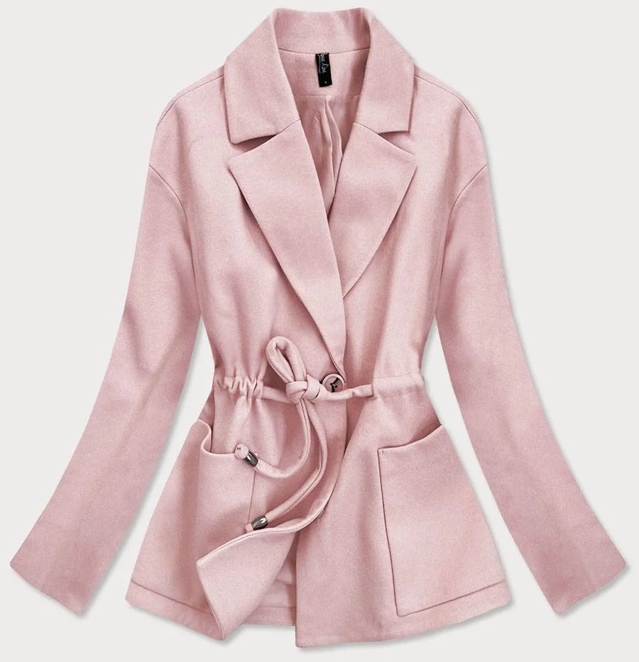 Krátký růžový volný dámský kabát model 16148742 - ROSSE LINE
