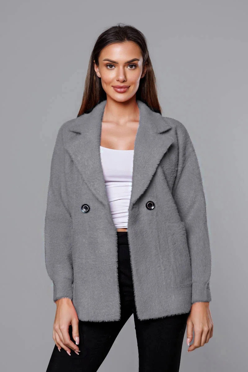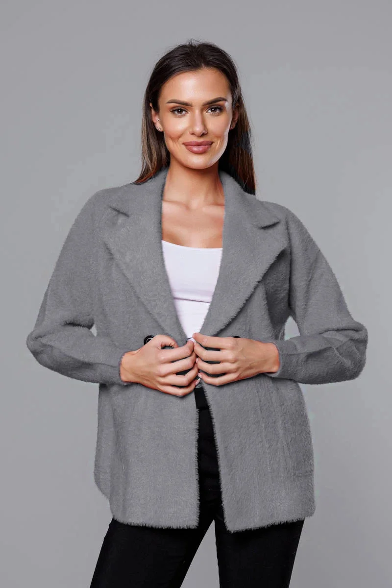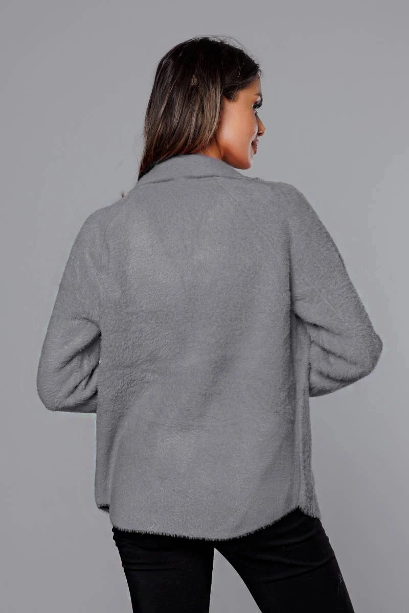 Krátký šedý přehoz přes oblečení typu alpaka (CJ65)