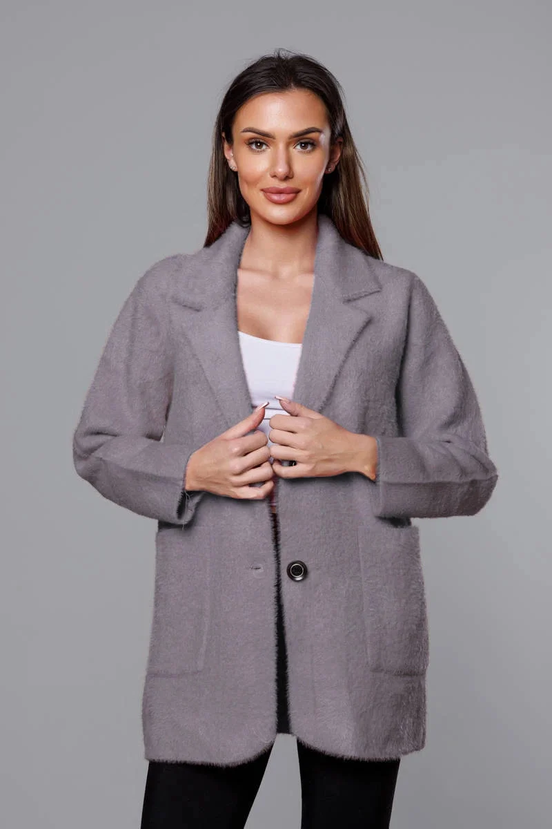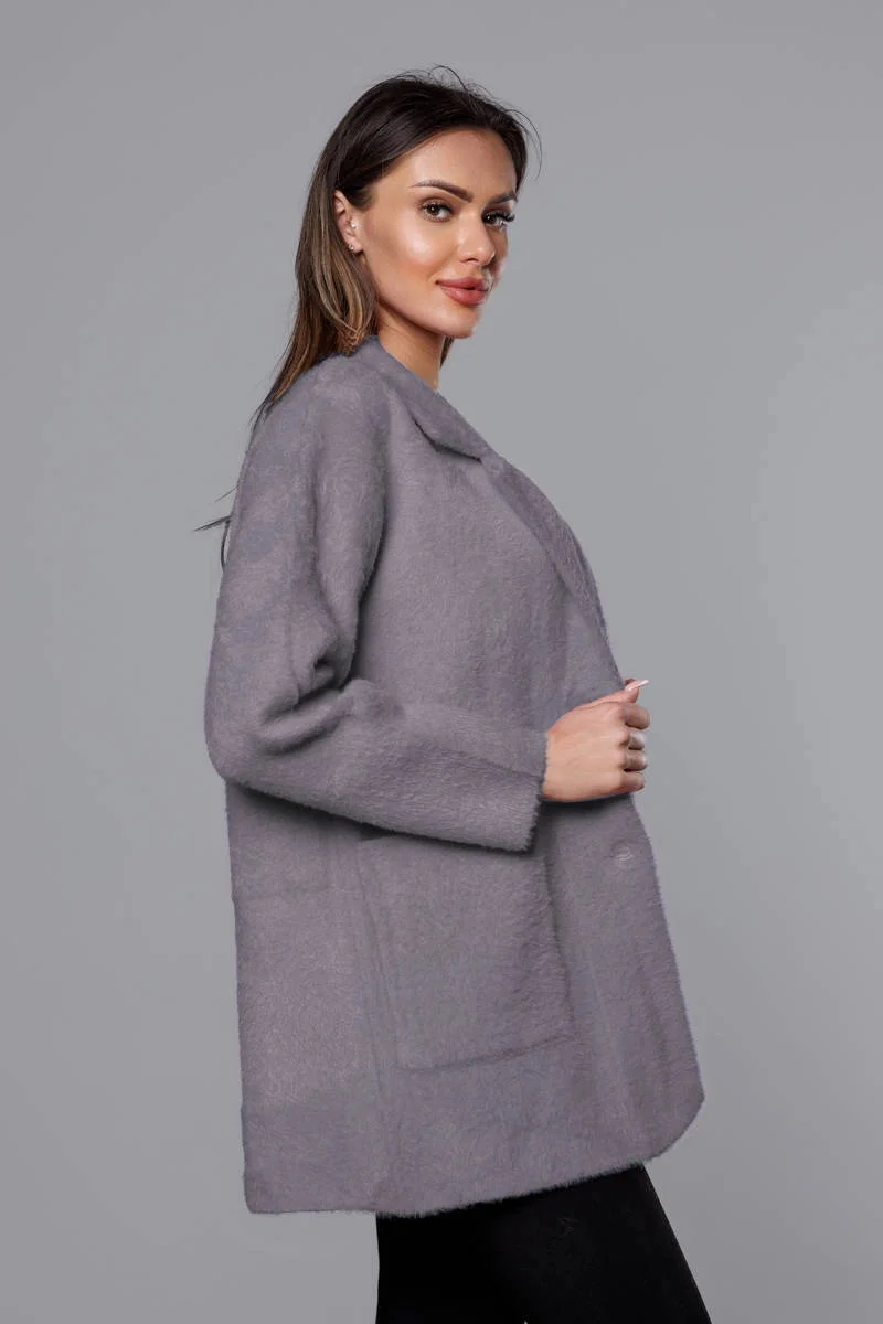 Krátký šedý vlněný přehoz přes oblečení typu alpaka (7108-1)
