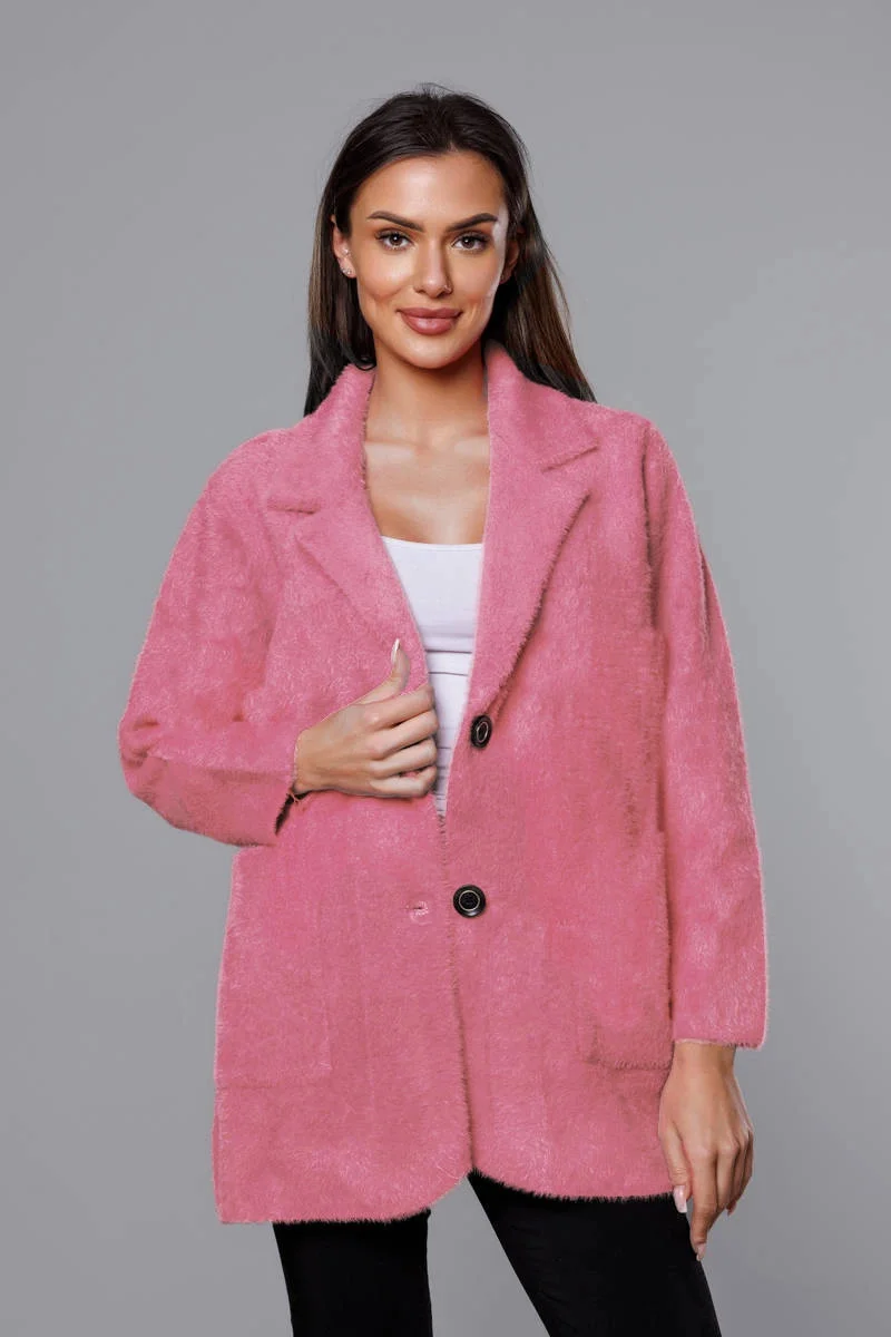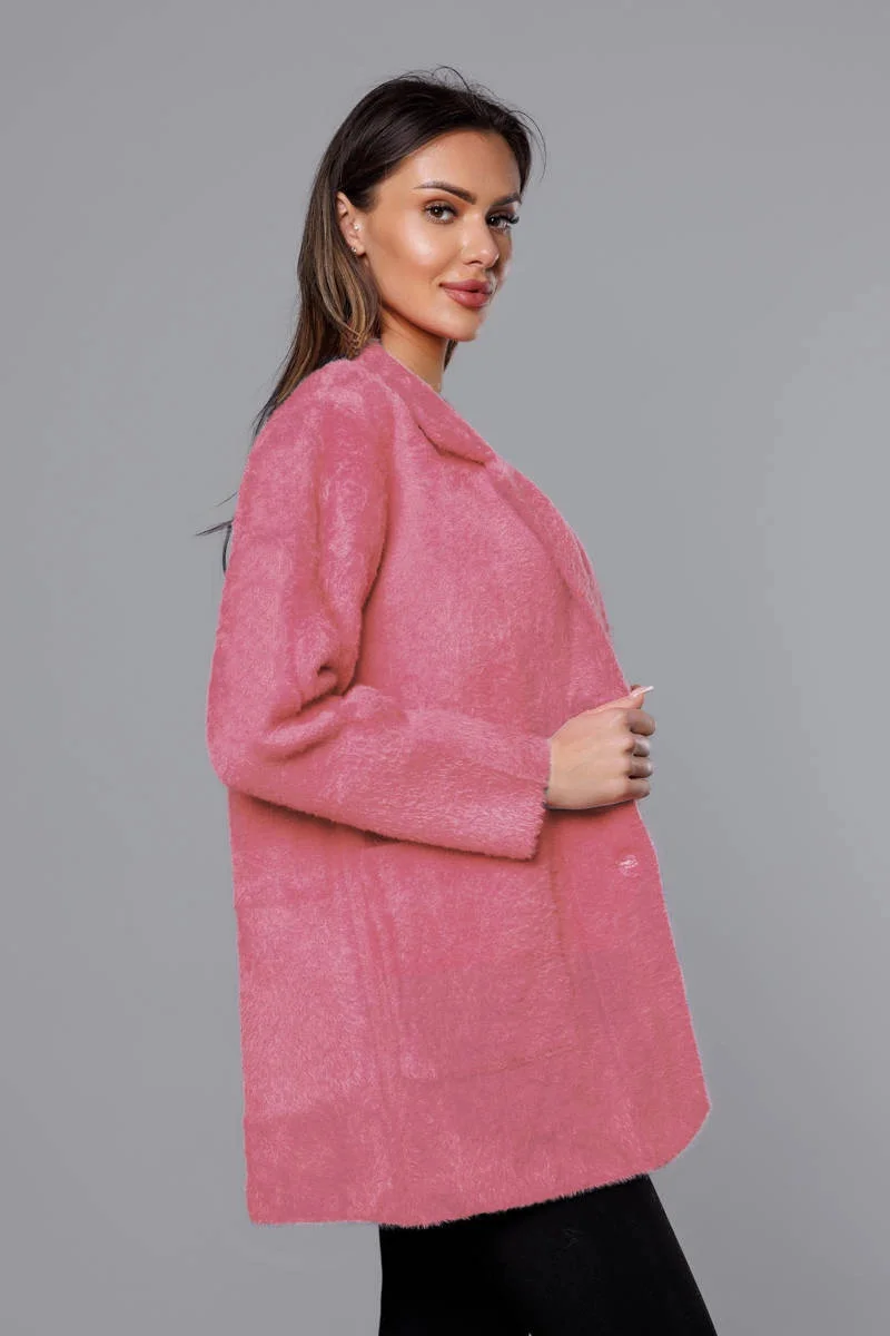 Krátký vlněný přehoz přes oblečení typu alpaka v lososové barvě model 18059153 - MADE IN ITALY