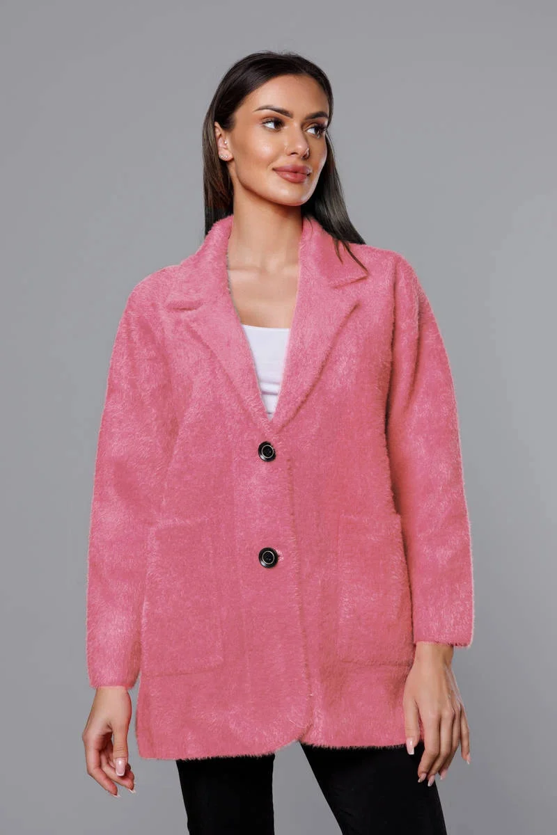 Přidání recenze k Krátký vlněný přehoz přes oblečení typu alpaka v lososové barvě model 18059153 - MADE IN ITALY