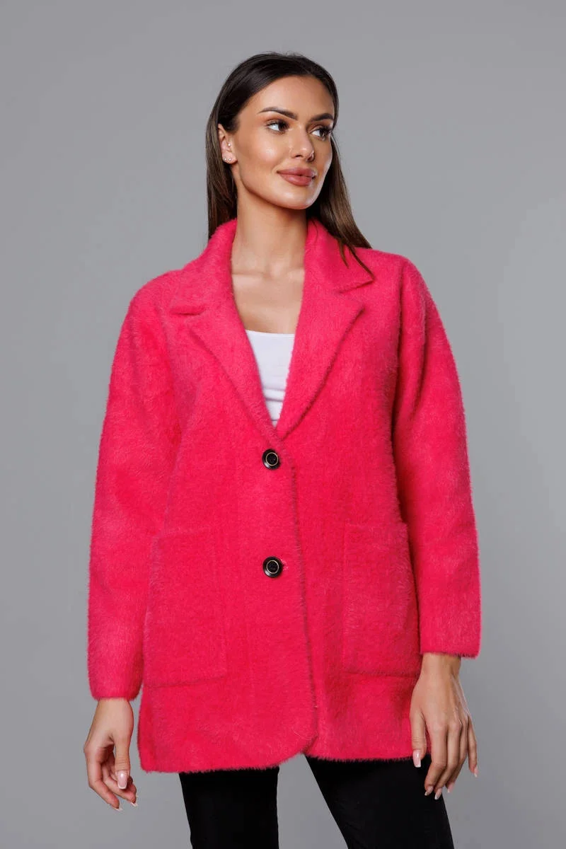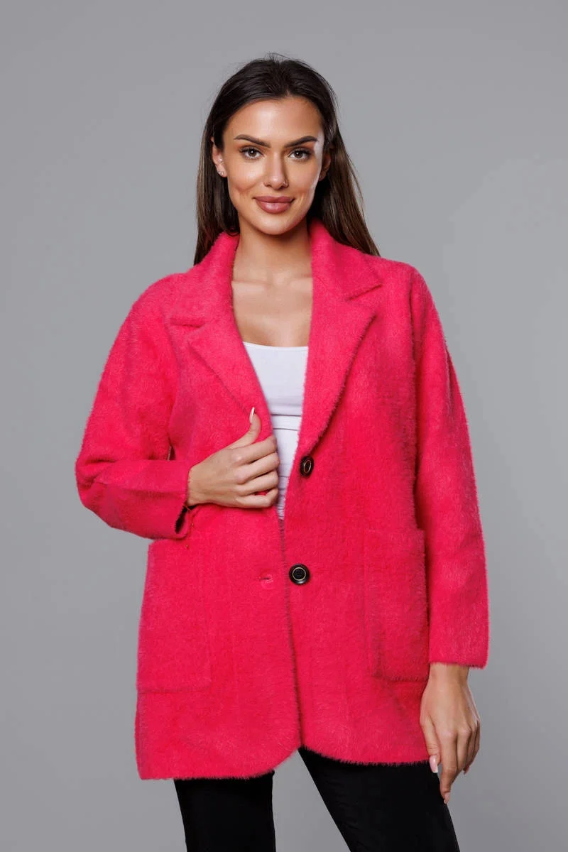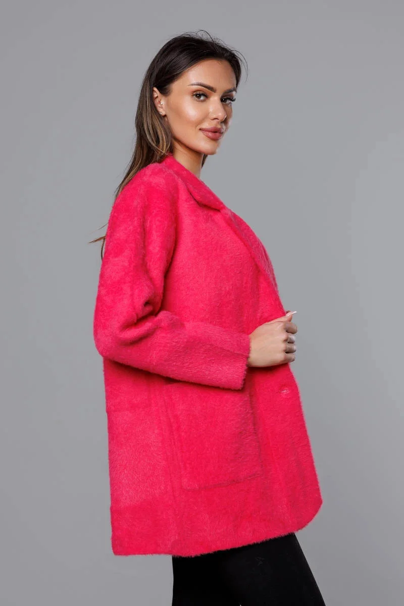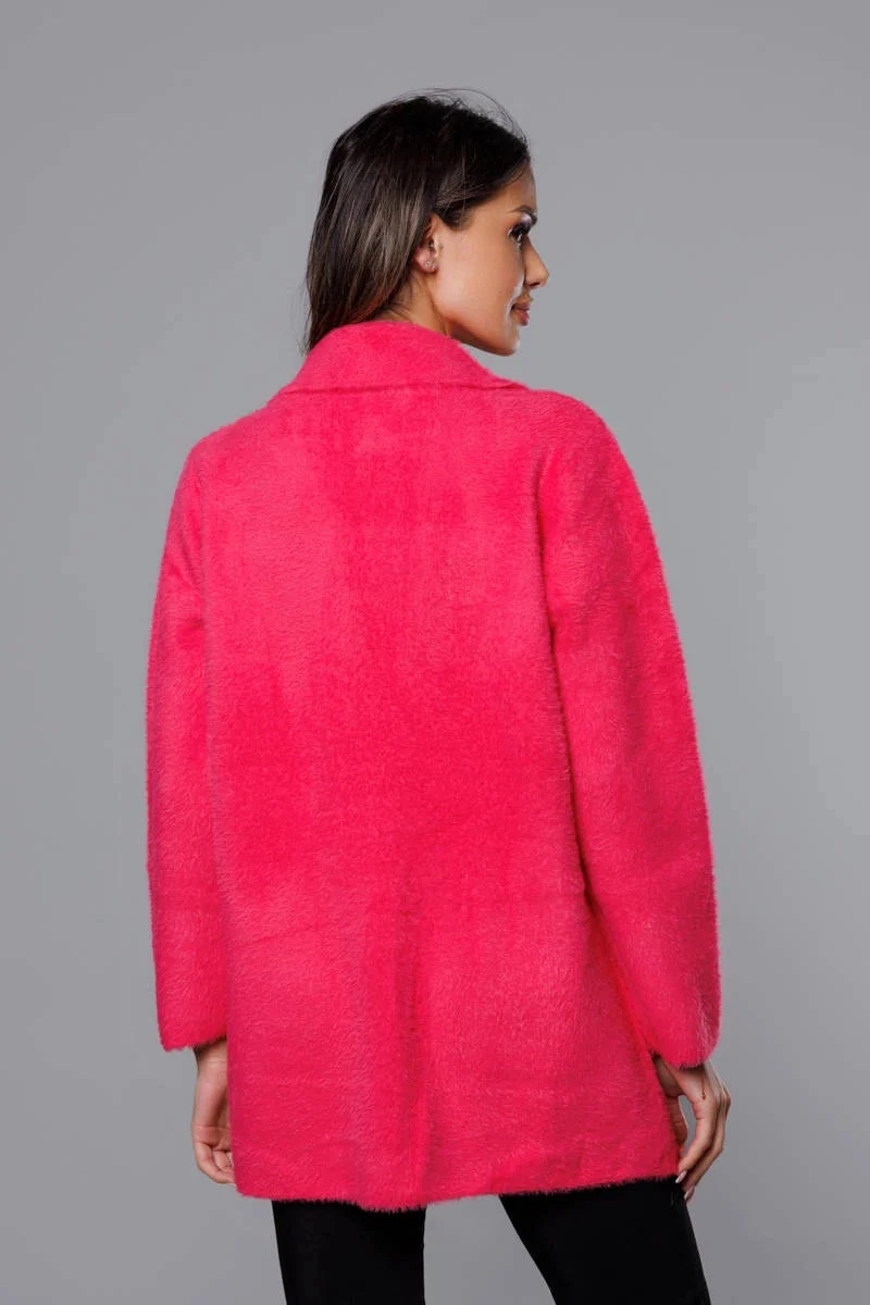 Krátký vlněný přehoz přes oblečení typu alpaka ve fuchsijové barvě (7108-1)