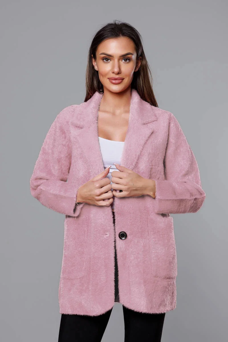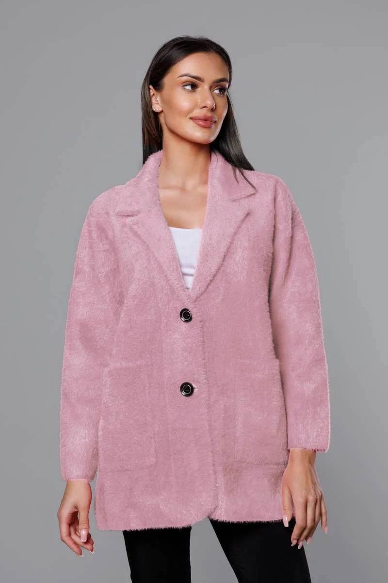 Přidání recenze k Krátký vlněný přehoz přes typu alpaka v růžové barvě model 18059155 - MADE IN ITALY