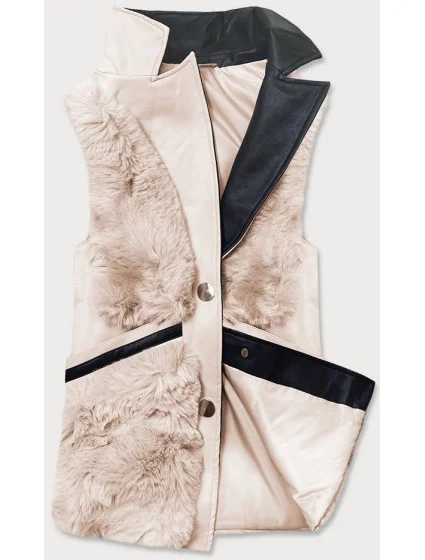 Krémová dámská vesta s kožíškem model 16151631 - S'WEST