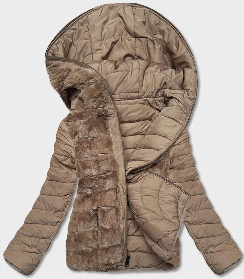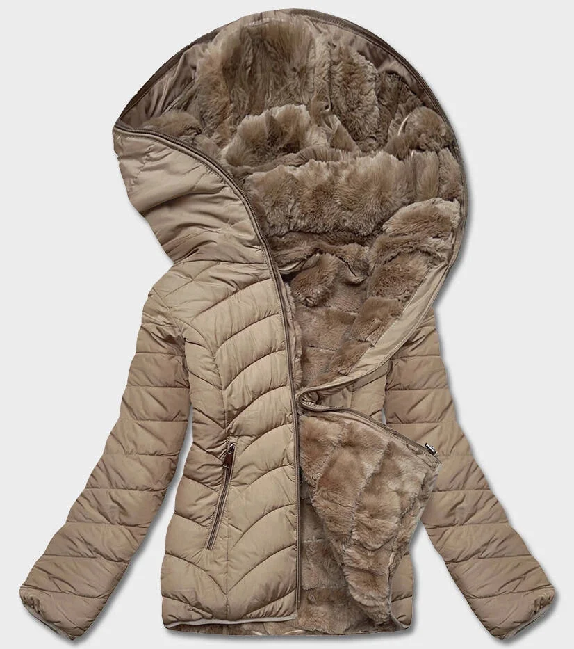 KRÓTKA DWUSTRONNA KURTKA DAMSKA ZIMOWA BEŻOWA (2M-21507)