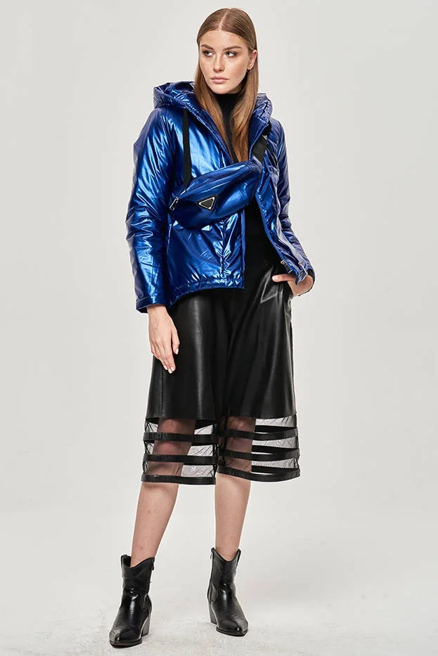 Metaliczna kurtka z nieodpinanym kapturem