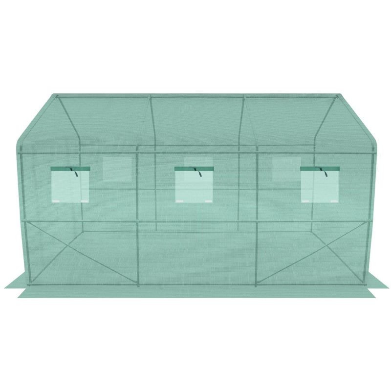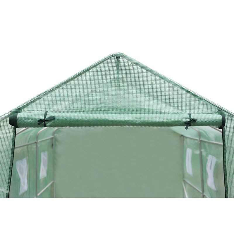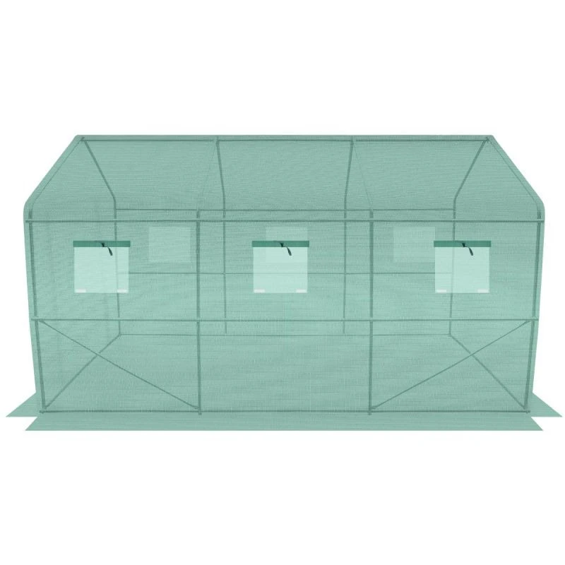 Fóliový skleník má 6 oken se sítěmi proti komárům a fóliovými závěsy, které chrání před nadměrnou vlhkostí a zároveň zajišťují optimální proudění vzduchu a dostatečný přístup světla. Má 120 cm široké uzamykatelné dveře, které vám umožní pohodlný výstup nebo vstup.