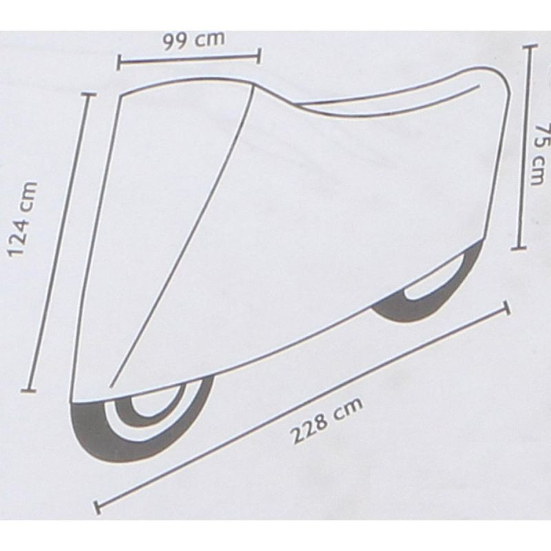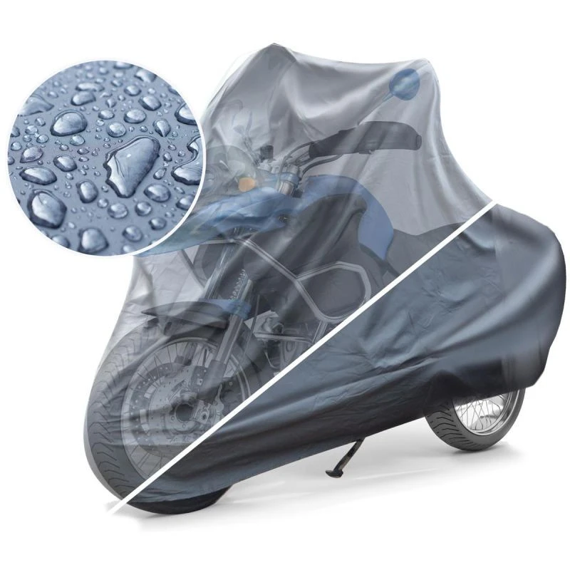 Ochranný kryt na motorku je vyroben z pevného PVC, díky čemuž je odolný proti roztržení, UV záření a povětrnostním vlivům.