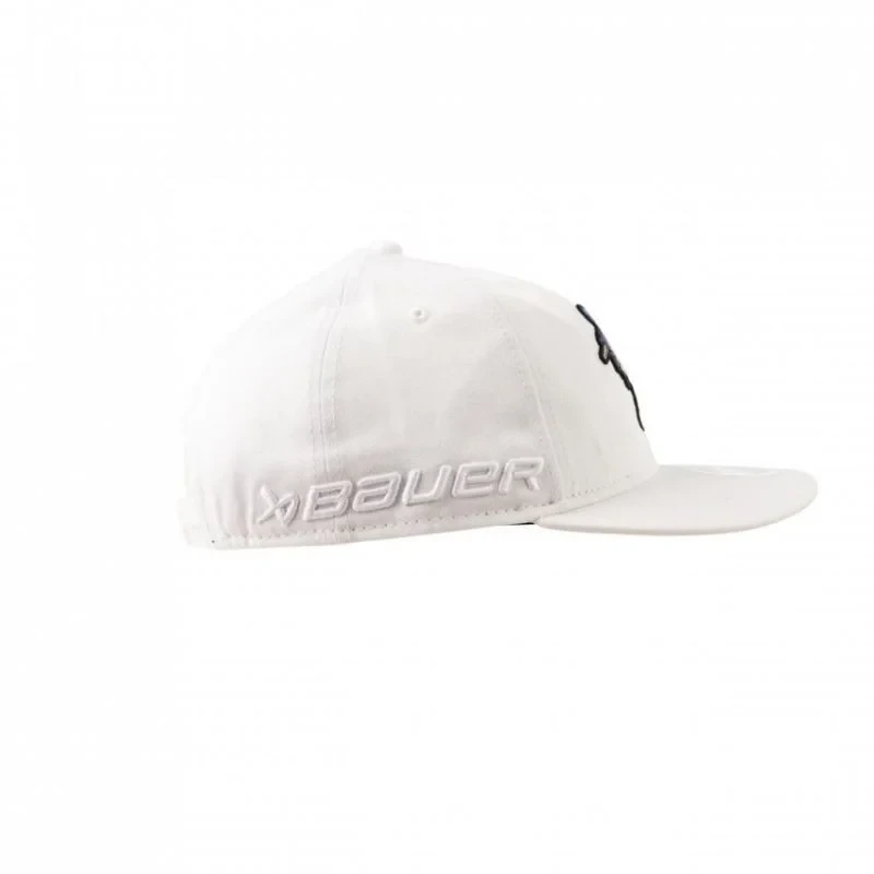 - Tato bílá snapback kšiltovka má na přední straně velké vyšité logo Bauer ve veselém hokejovém designu.