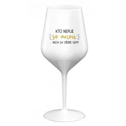 KTO NEPIJE SO MNOU...NECH SA OŽERIE SÁM! - biely nerozbitný pohár na víno 470 ml