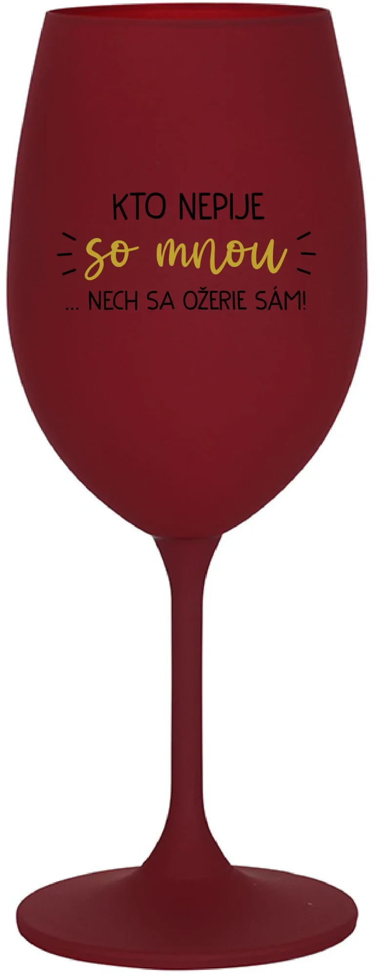 KTO NEPIJE SO MNOU...NECH SA OŽERIE SÁM! - bordovy pohár na víno 350 ml