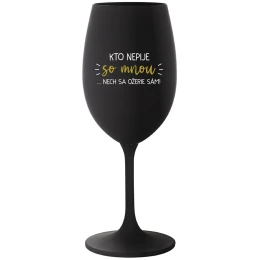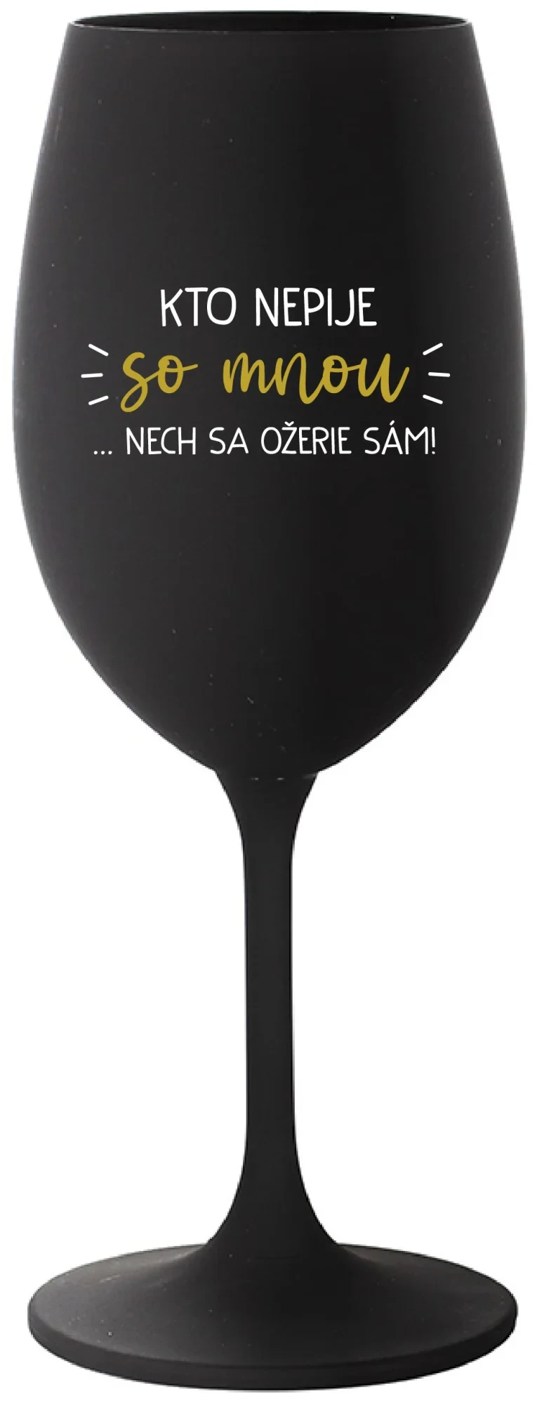 KTO NEPIJE SO MNOU...NECH SA OŽERIE SÁM! - čierny pohár na víno 350 ml