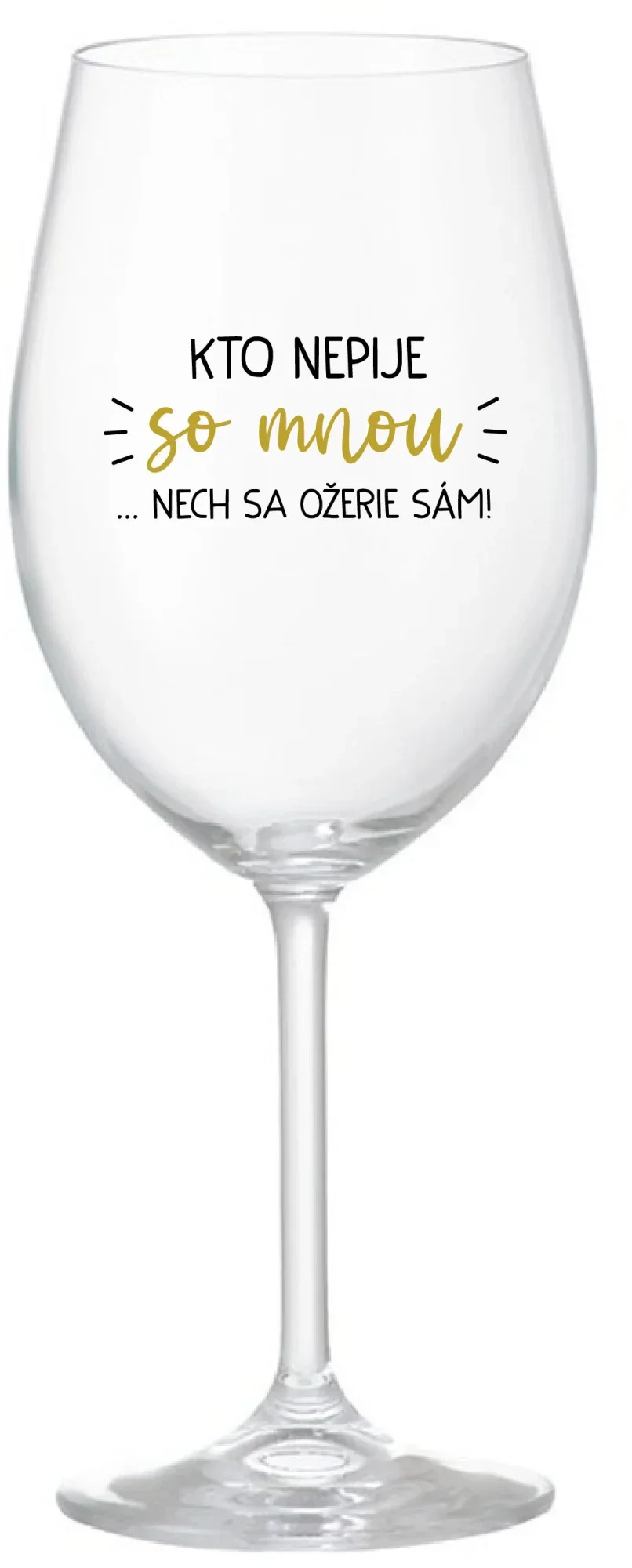 KTO NEPIJE SO MNOU...NECH SA OŽERIE SÁM! - priehľadný pohár na víno 350 ml