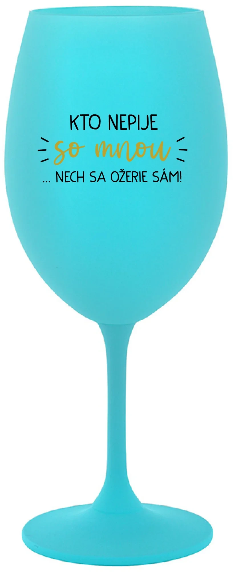 KTO NEPIJE SO MNOU...NECH SA OŽERIE SÁM! - tyrkysový pohár na víno 350 ml