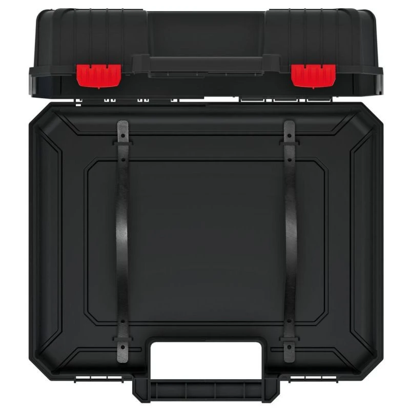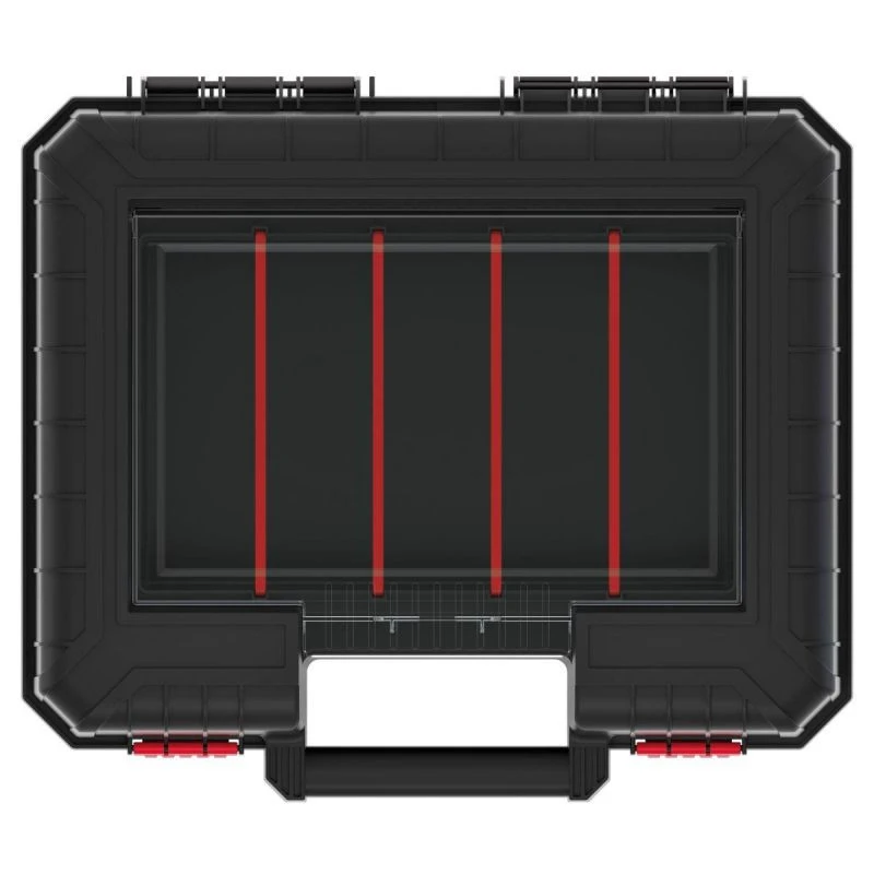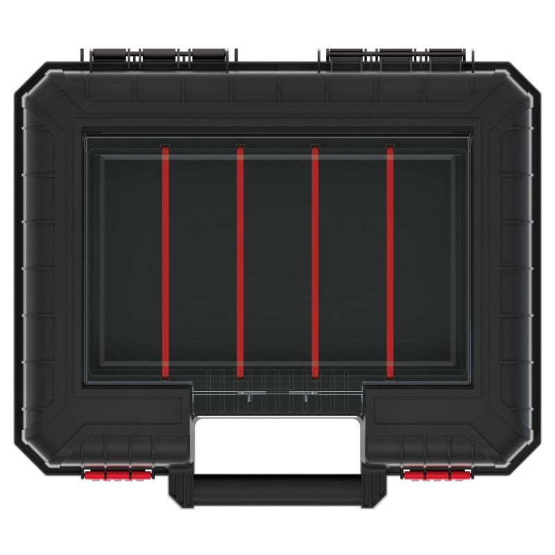 - průhledné víko organizéru z odolného polykarbonátu pro rychlý přístup k nářadí