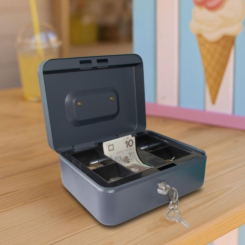 Hledáte robustní pokladničku na peníze, která by bezpečně a pohodlně uchovávala vaši hotovost? Pokladnička 20X16X8,5 cm je odolné a funkční řešení, ideální pro domácí i profesionální použití!