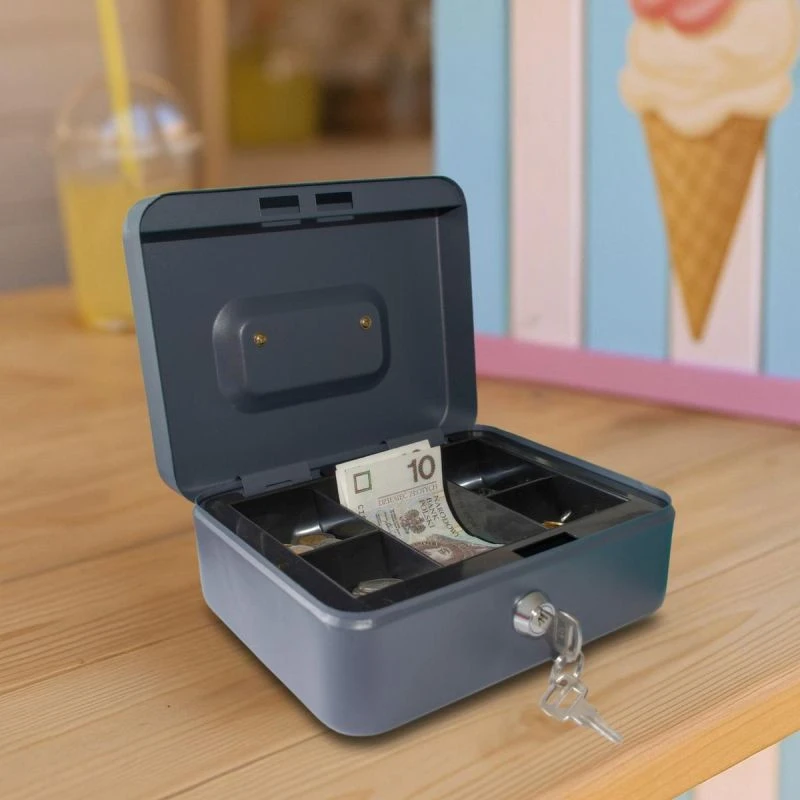 Díky kompaktním rozměrům se pokladnička snadno přenáší a ukládá v kanceláři, doma nebo i na cestách a lze ji snadno uložit do skříně, na stůl nebo do trezoru.