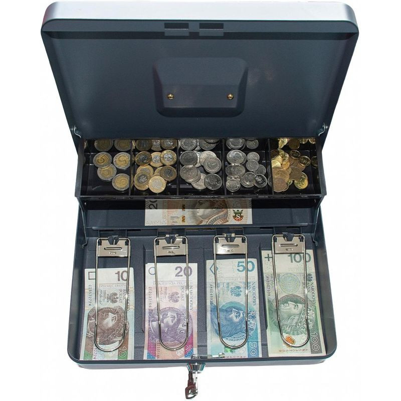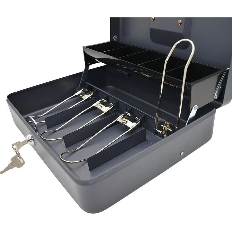 Díky vložce s pěti přihrádkami umožňuje pokladnička snadné třídění bankovek a mincí, takže je ideální volbou pro obchody, kanceláře i domácí uživatele. Vložka je vyrobena z odolného plastu ABS, takže je odolná proti poškození a snadno se čistí.