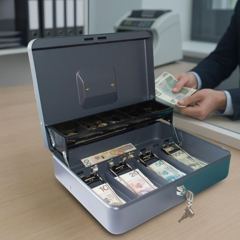 Pokladna na peníze 30X24X8,5 cm je odolné, funkční a profesionální řešení, ideální pro kanceláře, obchody, provozovny služeb i pro domácí použití!