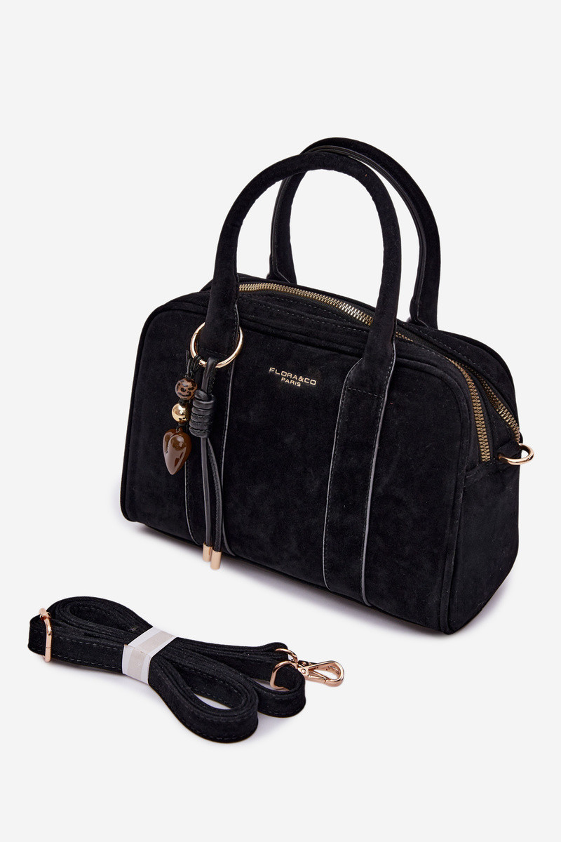 Kufříková Eko semišová kabelka s přívěskem Černá Sorielle